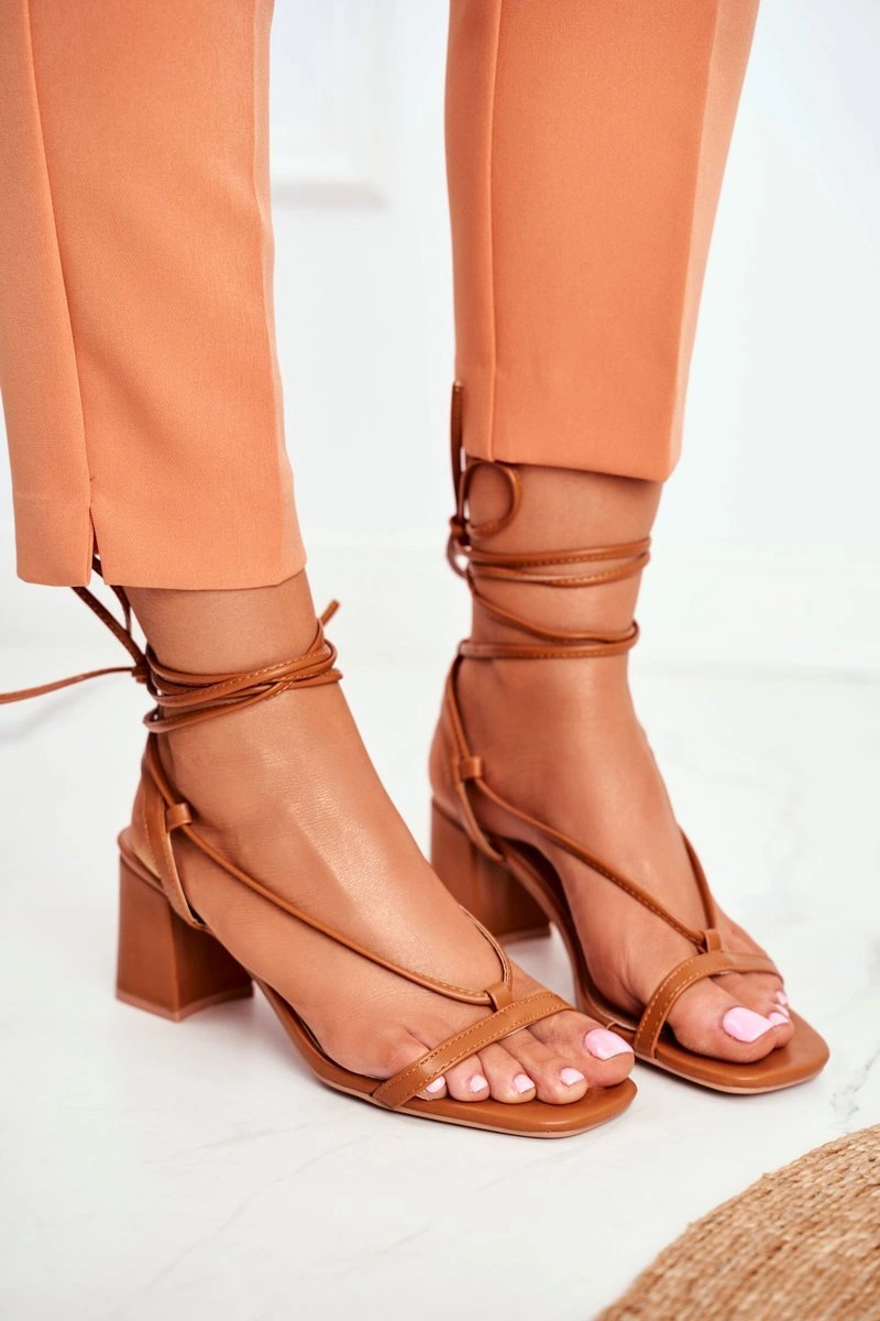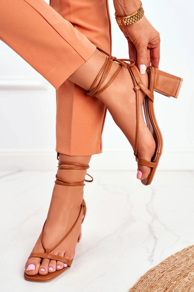 Sandały Damskie Na Słupku Wiązane Camel Morning