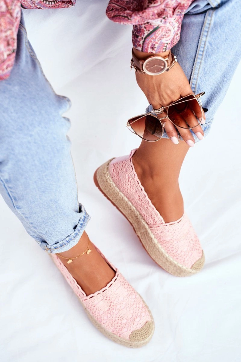 Espadryle Damskie Koronkowe Różowe Platforma Desante