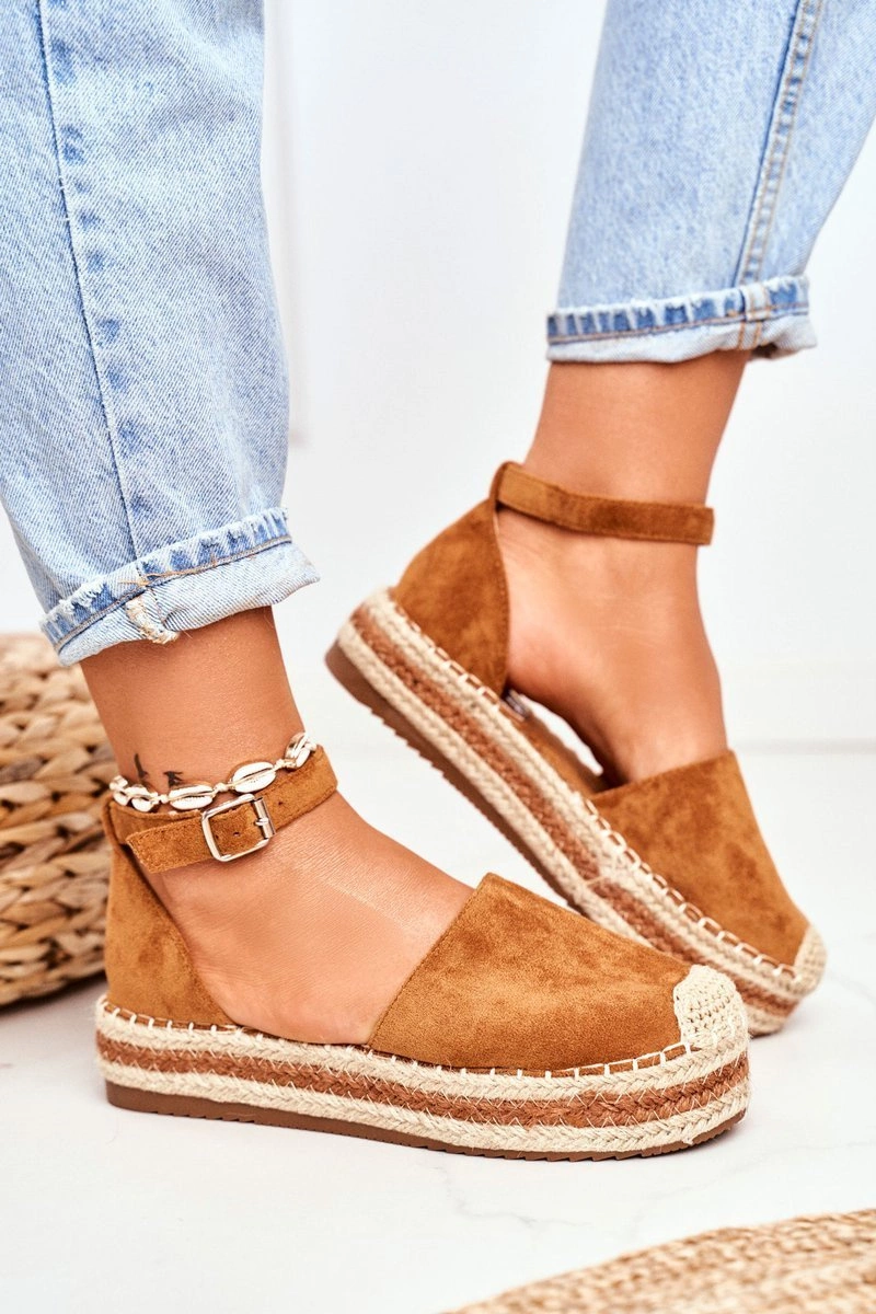Espadryle Damskie Na Platformie Słomkowe Camel Toca Toca