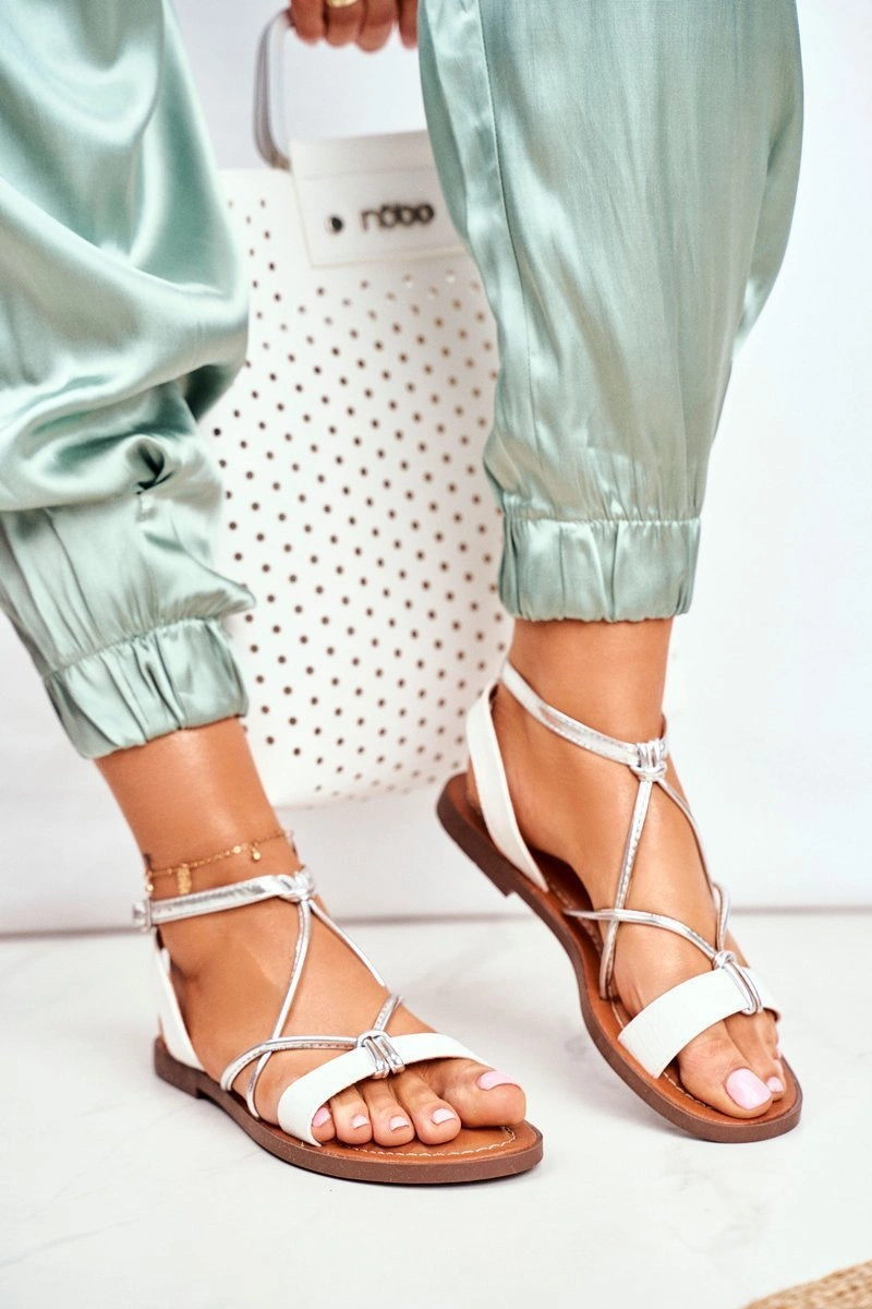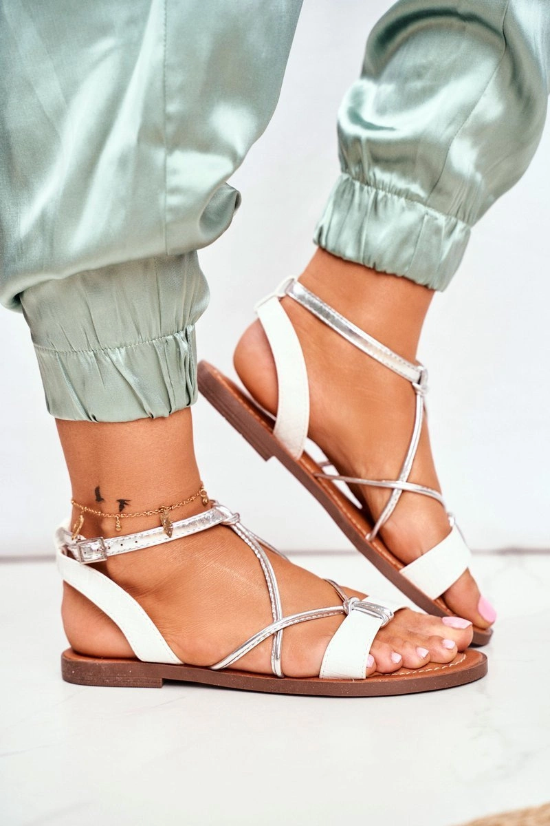Sandały Damskie Płaskie Białe Alison