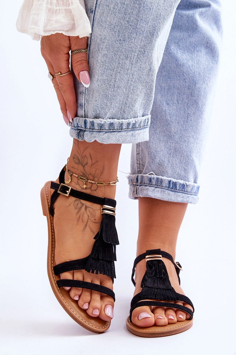 Wspaniałe damskie sandały, które zauroczą każdą z nas. Wykonane w całości z miłego w dotyku eko-zamszu. Będą świetnym wyborem podczas każdego letniego wyjścia. Zdobienie z frędzli w stylu boho. Klasyczne zapinanie wokół kostki na sprzączkę. Bardzo wygodne i eleganckie, czy potrzeba czegoś więcej? Przy wyborze rozmiaru prosimy sugerować się tabelą rozmiarów, która dostępna jest po najechaniu bądź kliknięciu w dany rozmiar.