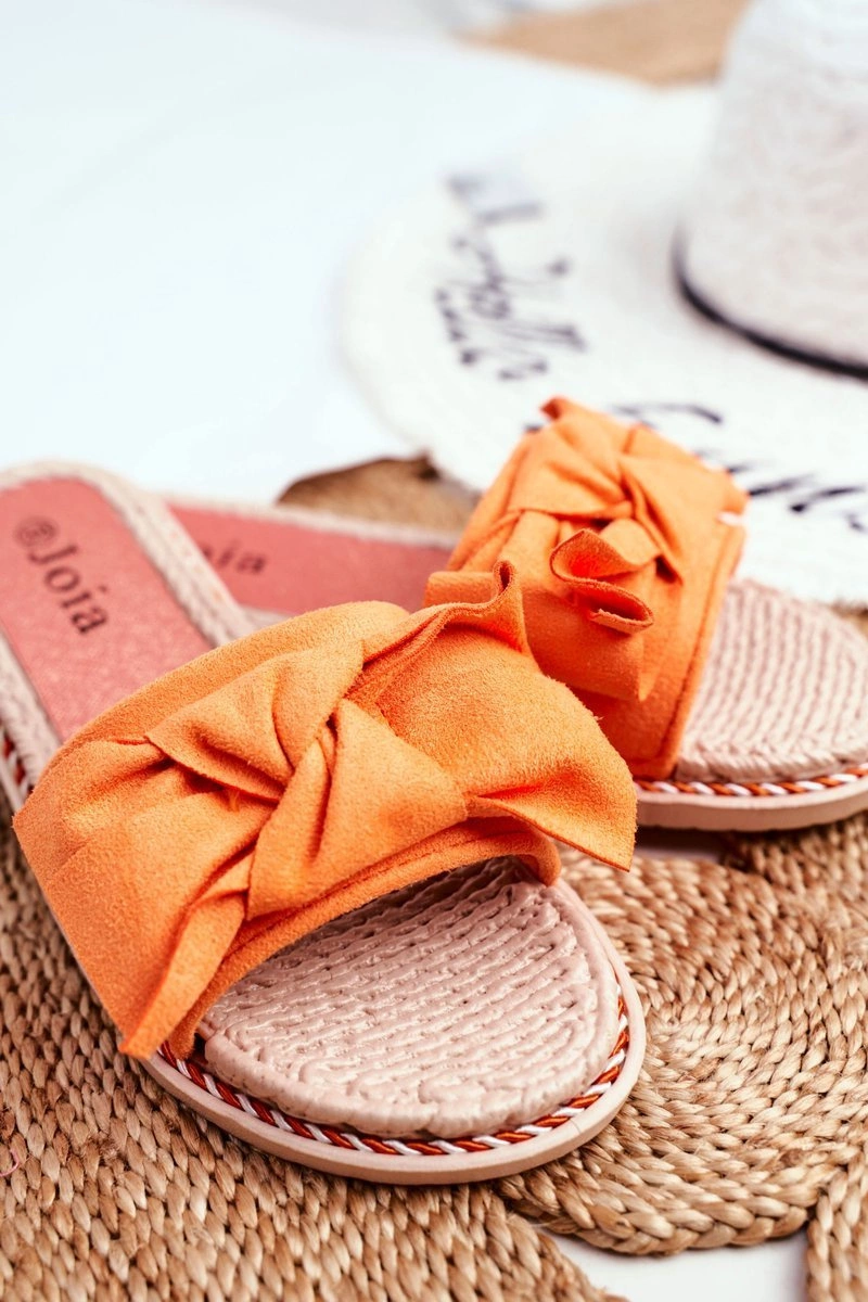 Klapki Damskie Z Kokardką Pomarańczowy Neon Happiness