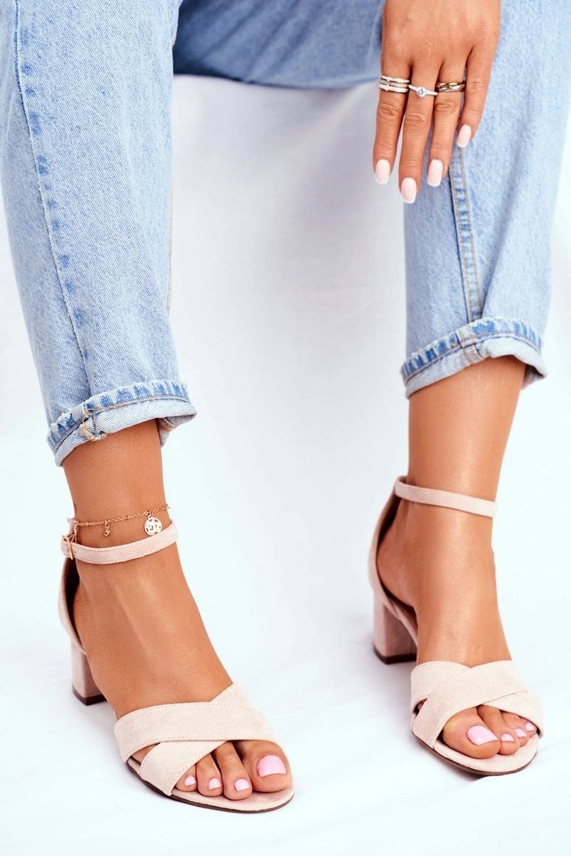 Beżowe Zamszowe Sandałki na Słupku Nela