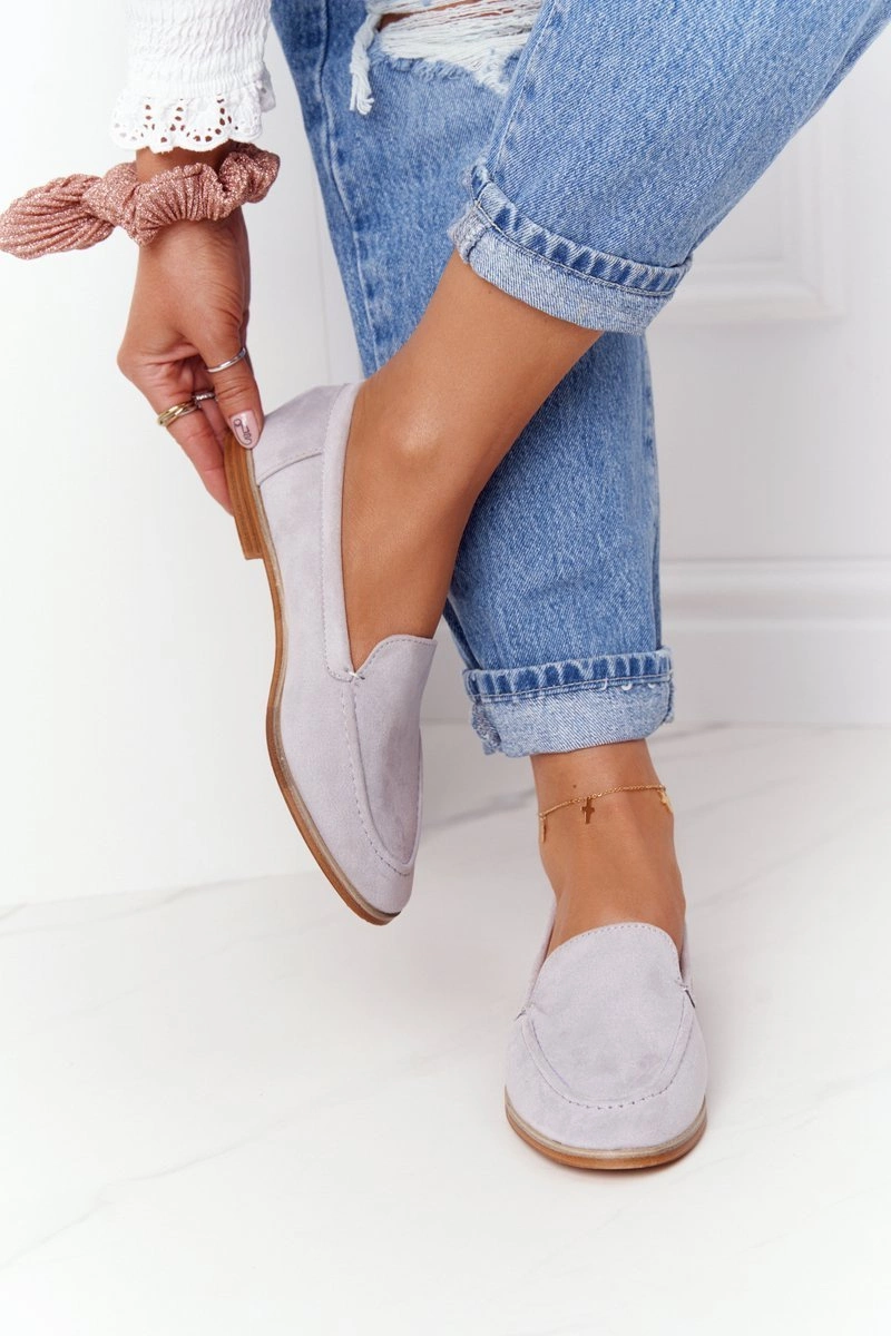 Damskie Półbuty Wsuwane Zamszowe Szare Twinky