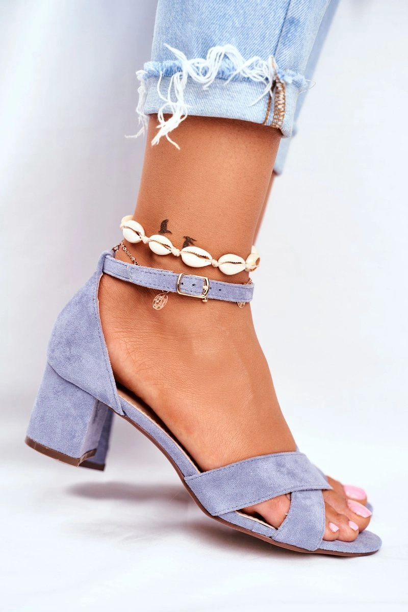 Zamszowe Sandałki na Słupku Niebieskie Nela