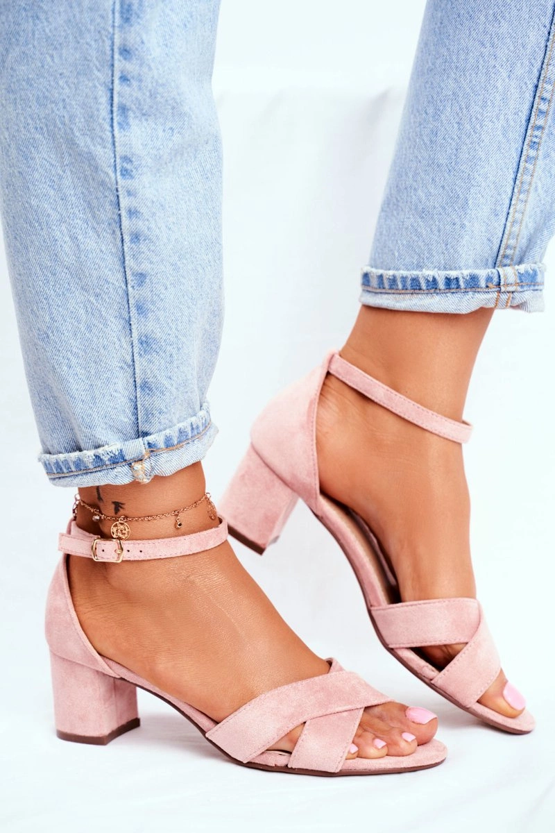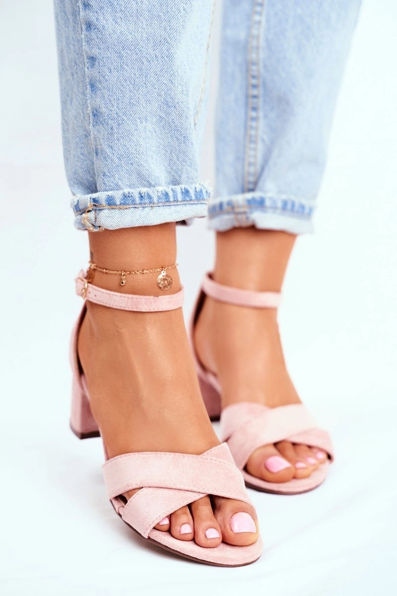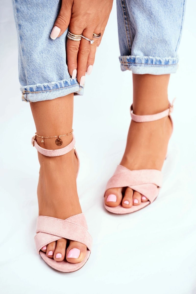 Zamszowe Sandałki na Słupku Różowe Nela