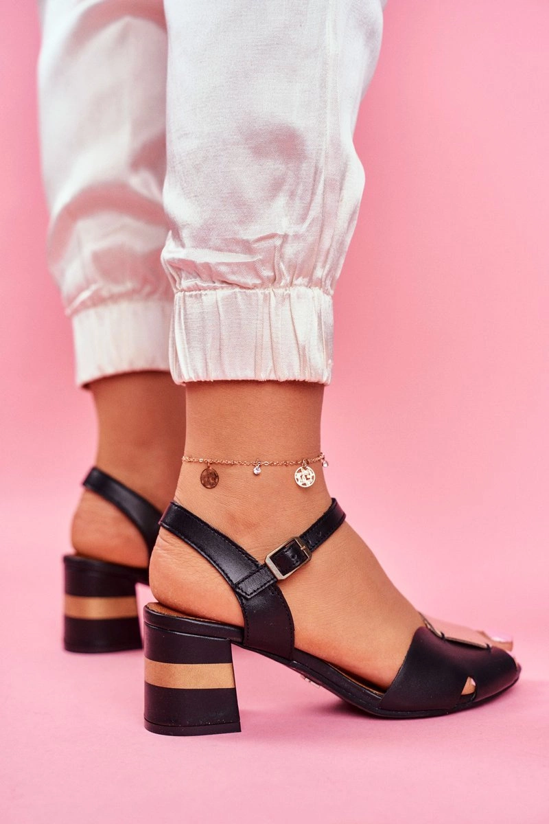 Skórzane Sandały Na Obcasie Maciejka 04120-01 Czarne