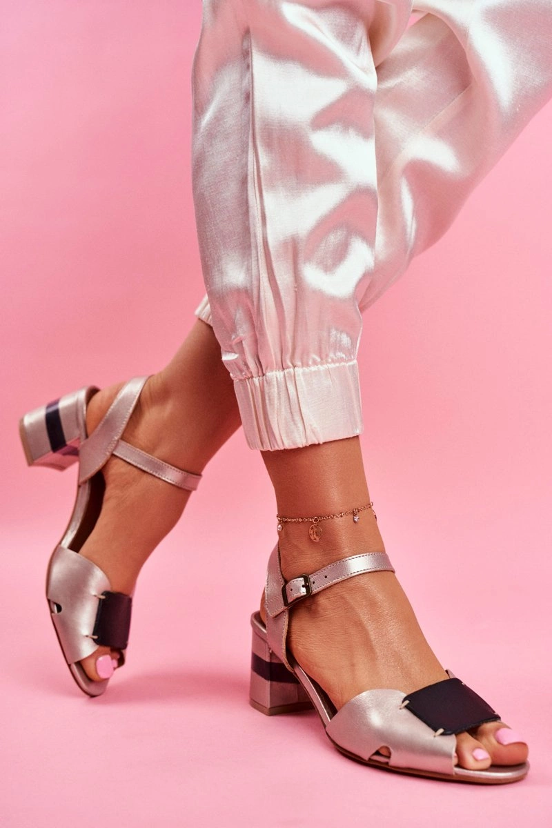 Skórzane Sandały Na Obcasie Maciejka 04120-25 Złote
