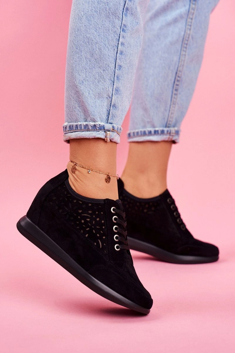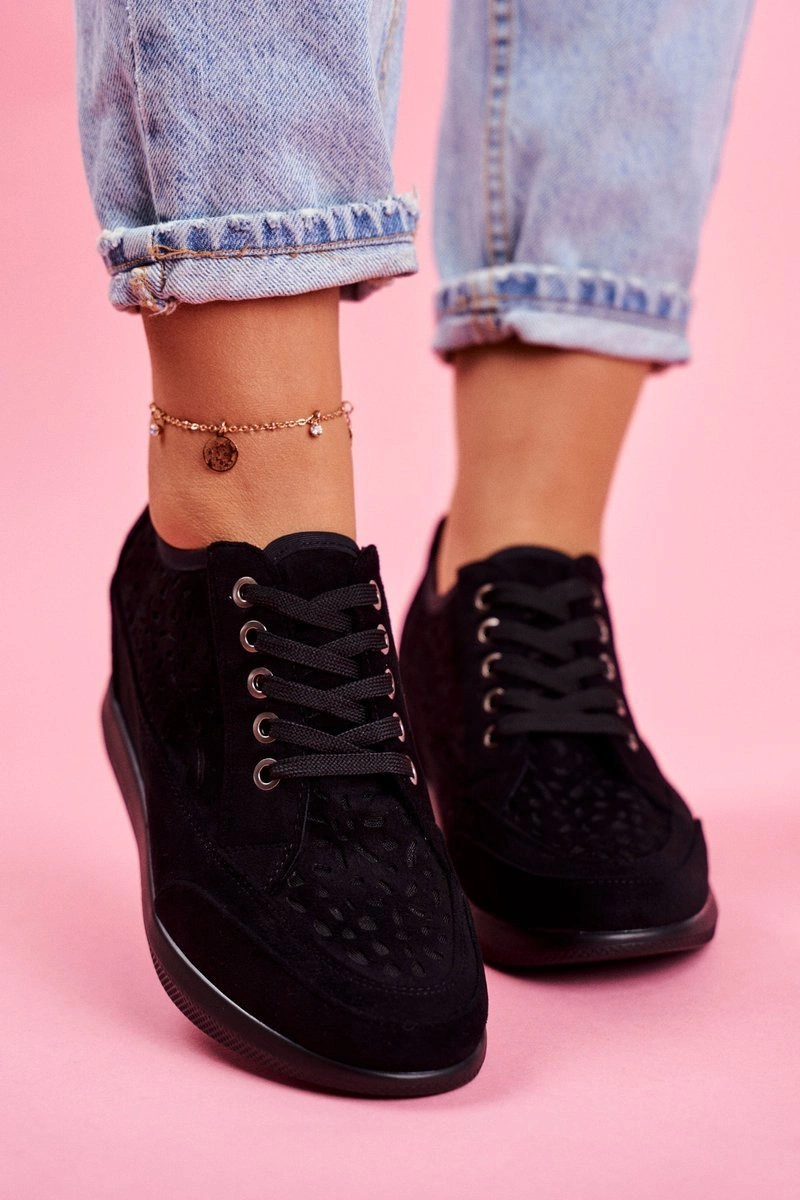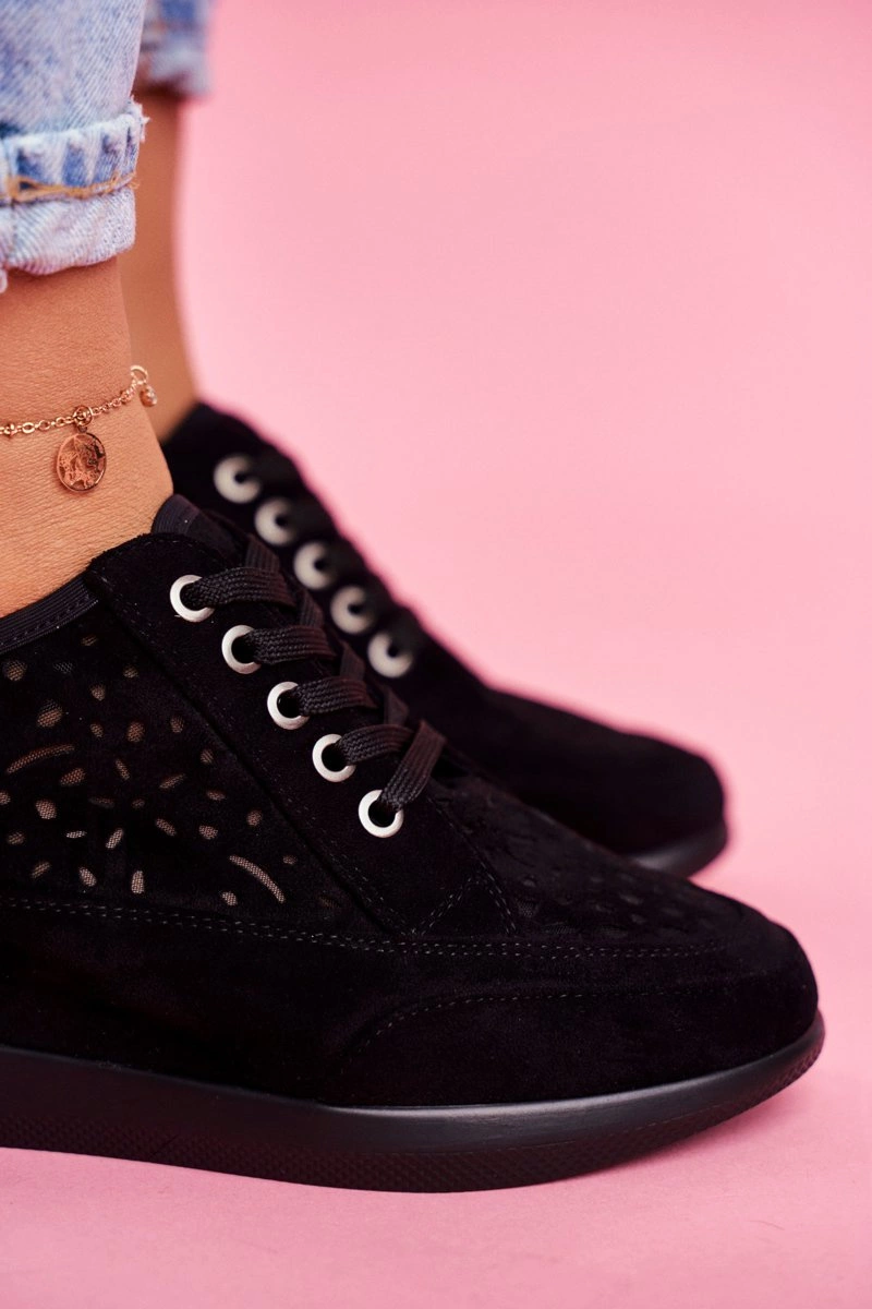 Sneakersy Damskie Sergio Leone Ażurowe Czarne PB122