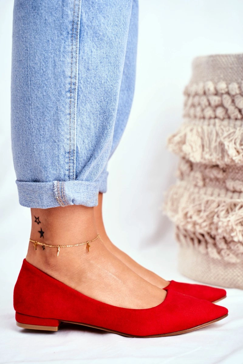 Baleriny Damskie W Szpic Zamszowe Czerwone Westley