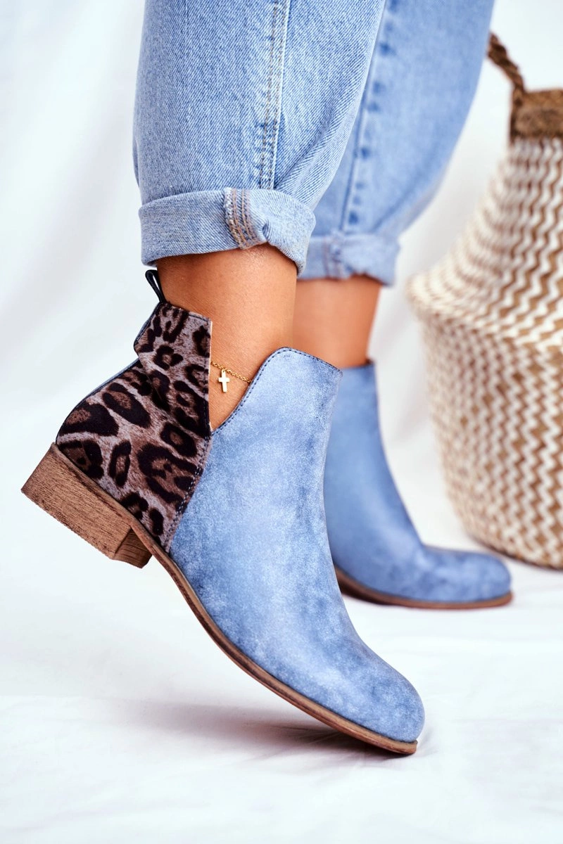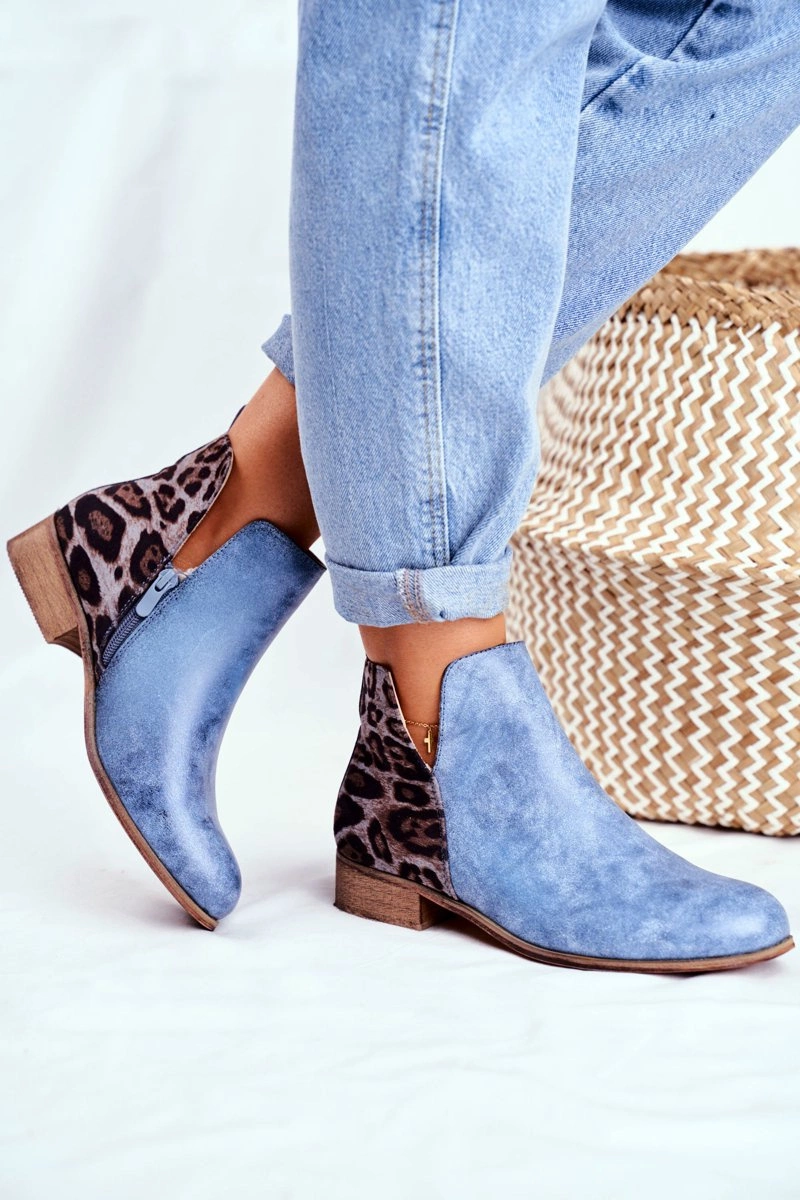 Botki Damskie Płaski Obcas Wiosenne Niebieskie Viva