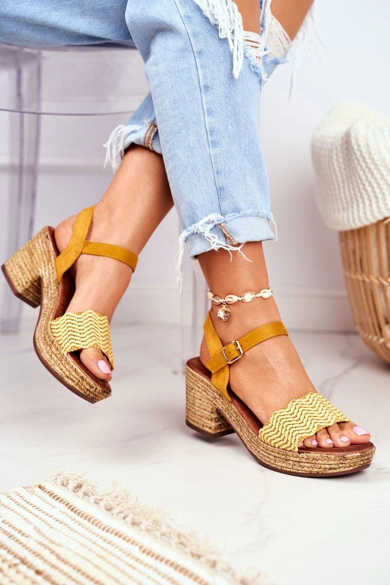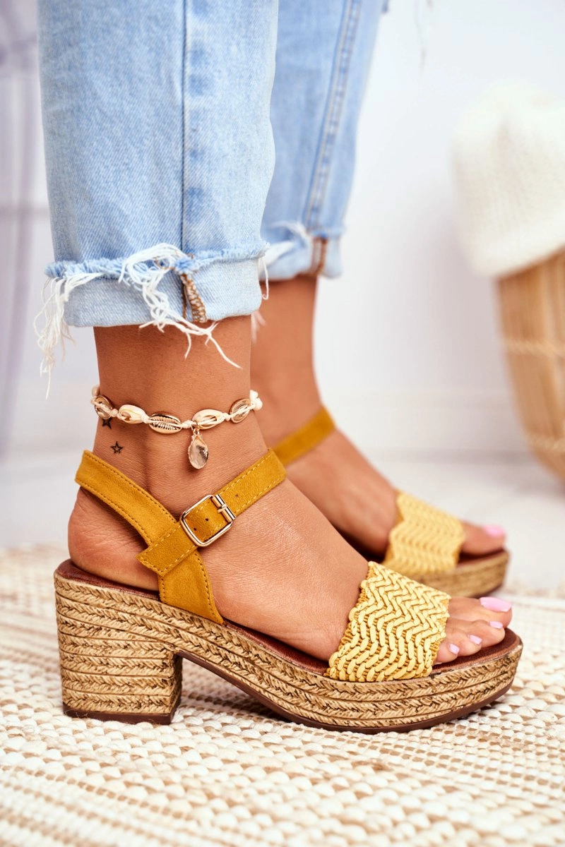Delikatne i kobiece sandały na platformie. Buty wykonane są z eko skóry, miękka wkładka zapewni komfort. Platforma oraz słupek zdobione są imitacją plecionki. Przy wyborze rozmiaru prosimy sugerować się tabelą rozmiarów.
