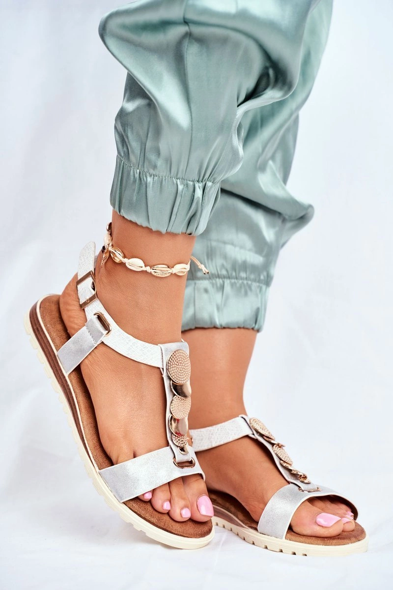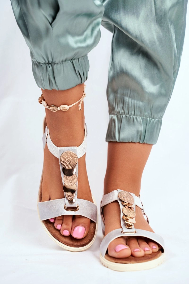 Płaskie Sandały Z Ozdobami Srebrne Milton