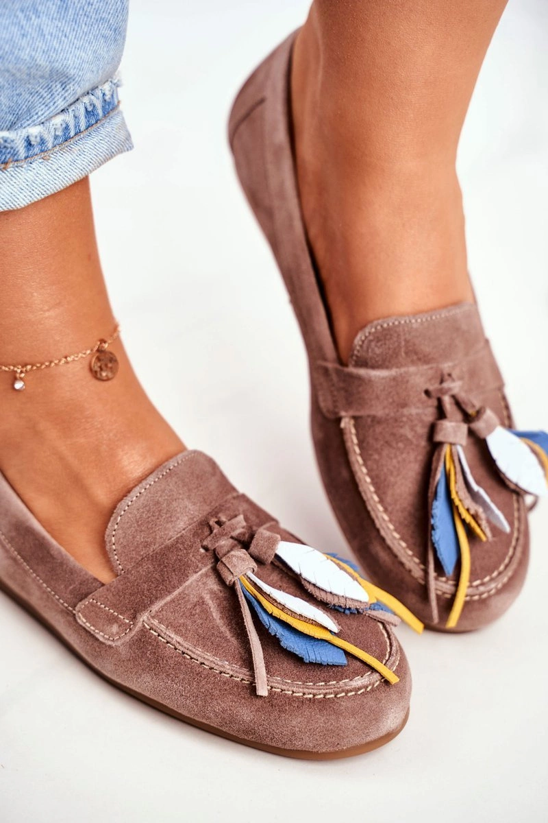 Damskie Mokasyny Maciejka Skórzane Beżowe 04494-04/00-5