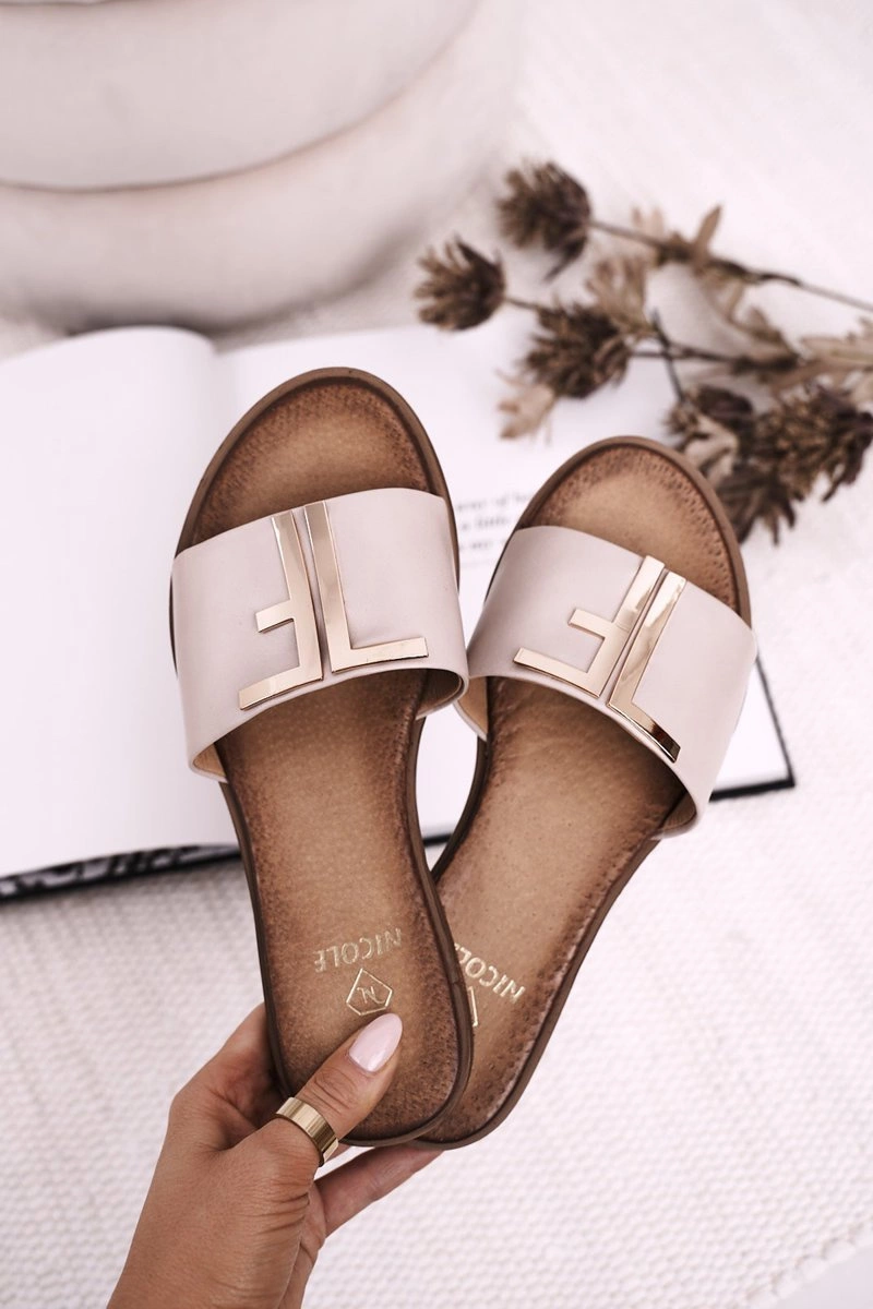 Damskie Klasyczne Skórzane Klapki Beżowe Adele