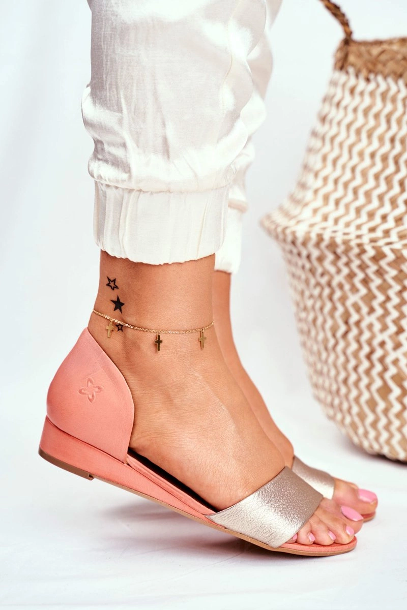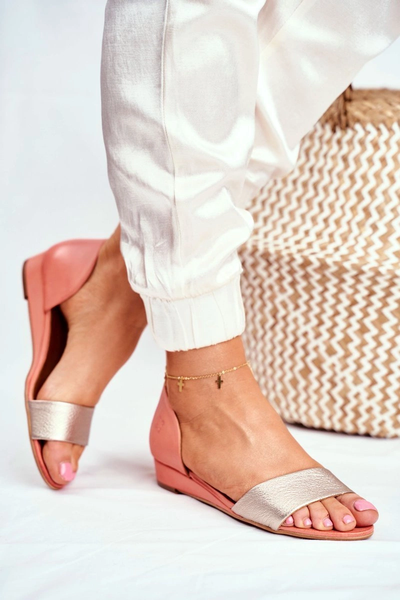 Skórzane Sandały Maciejka 1971-48 Brzoskwiniowe