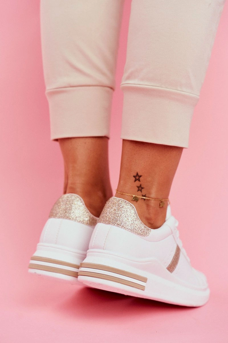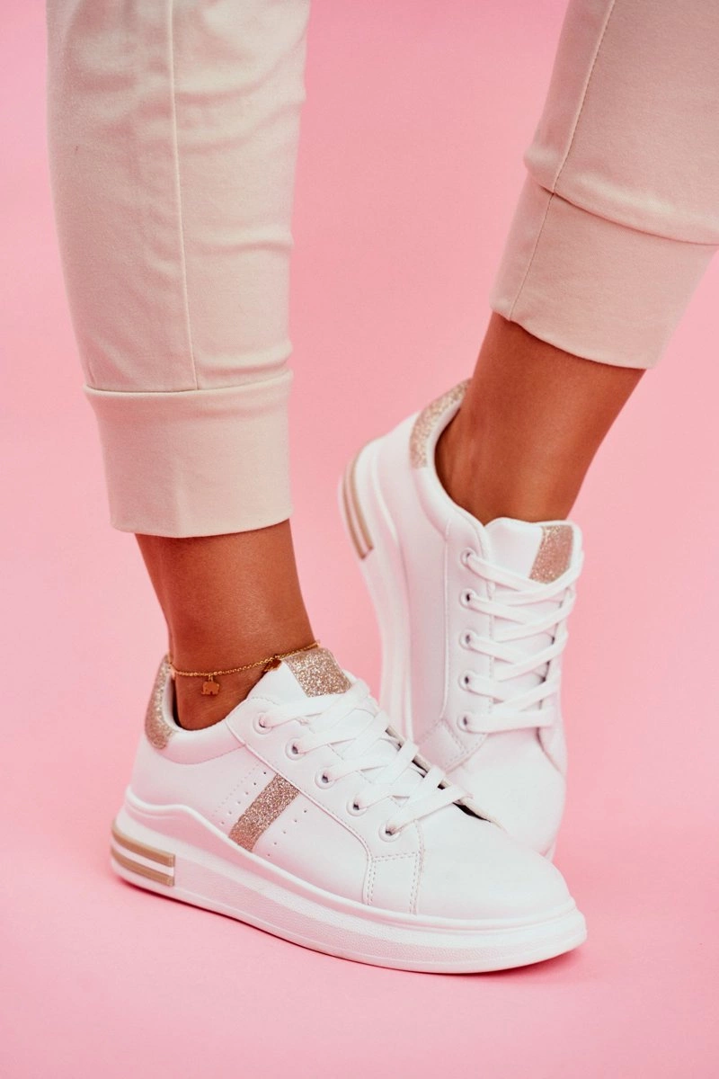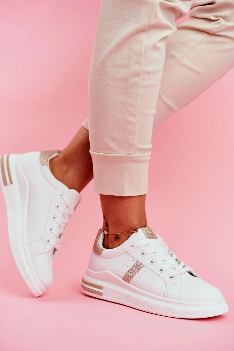 Sportowe Damskie Buty Białe Złote Brokat Narval
