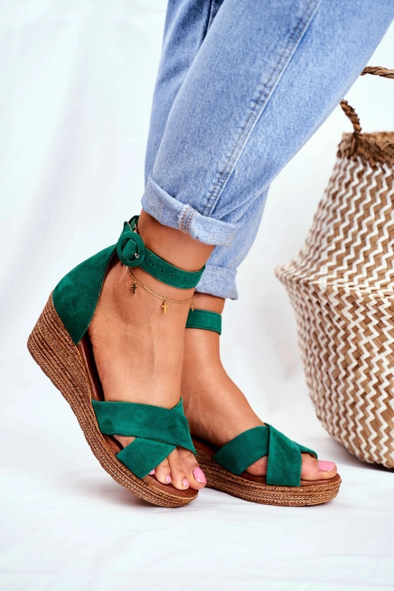 Zamszowe Sandały Na Koturnie Maciejka 04565-09 Zielone