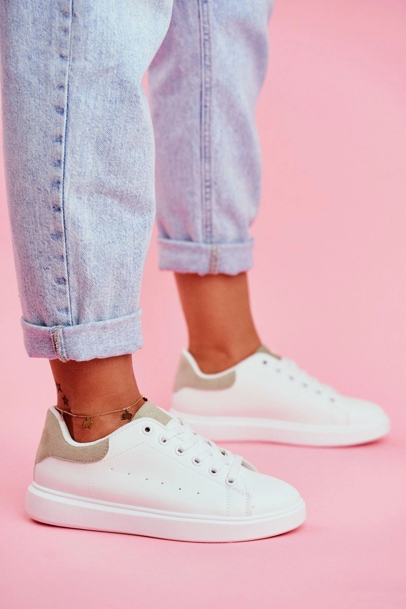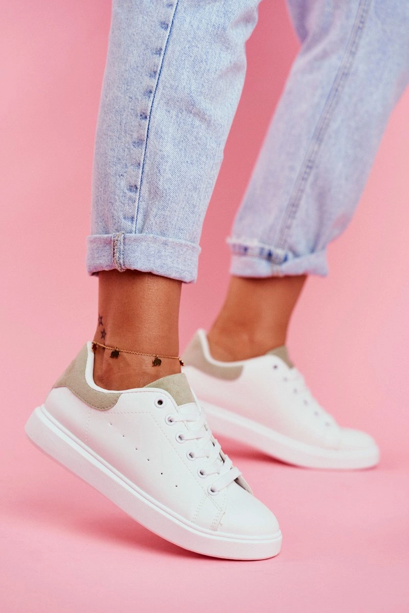 Sportowe Damskie Buty Białe z Zielonym Zapiętkiem Milly