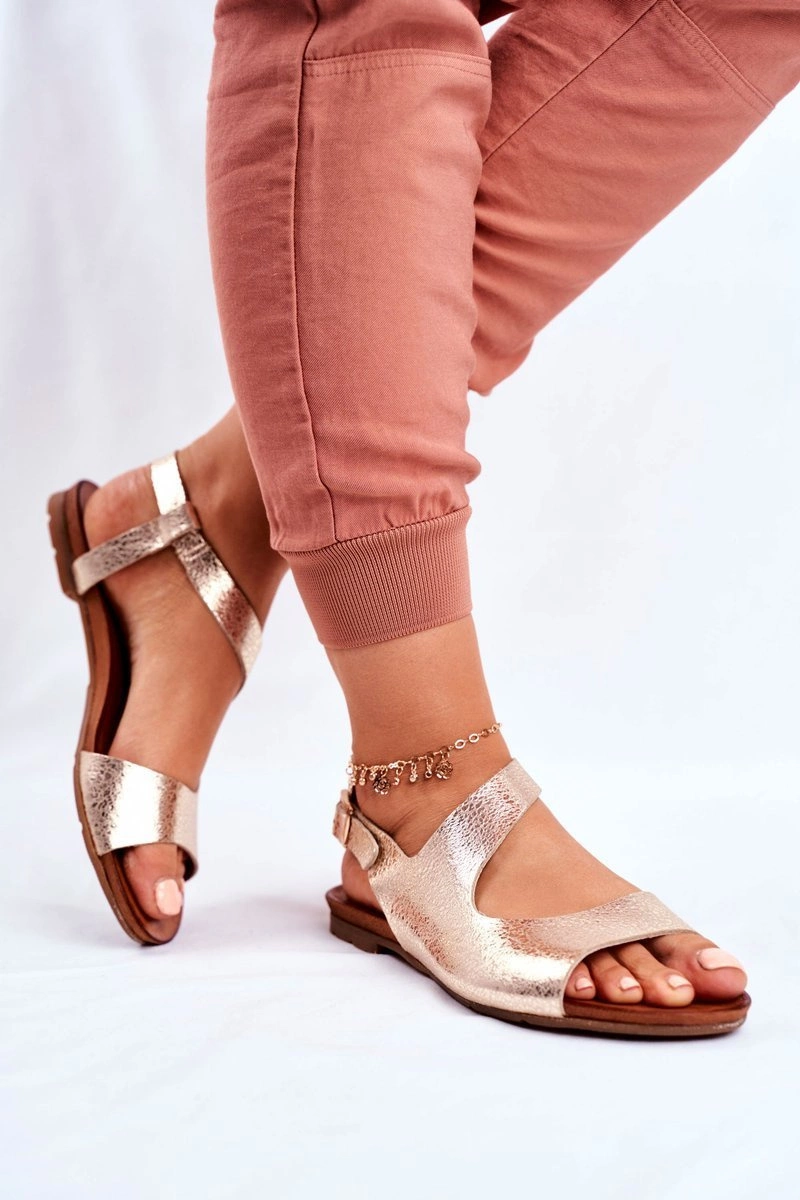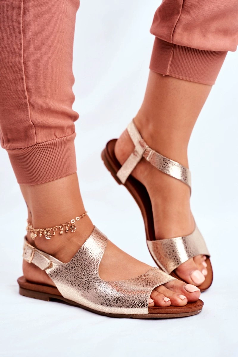 Damskie Sandały Laura Messi Skórzane 1116 Snake Złote Vollare