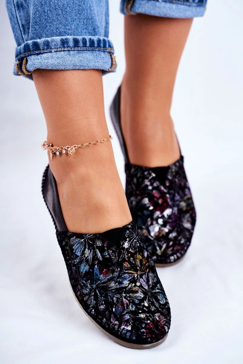 Baleriny Damskie Maciejka Skórzane Czarne 01930-70/00-0