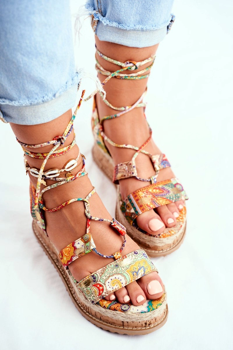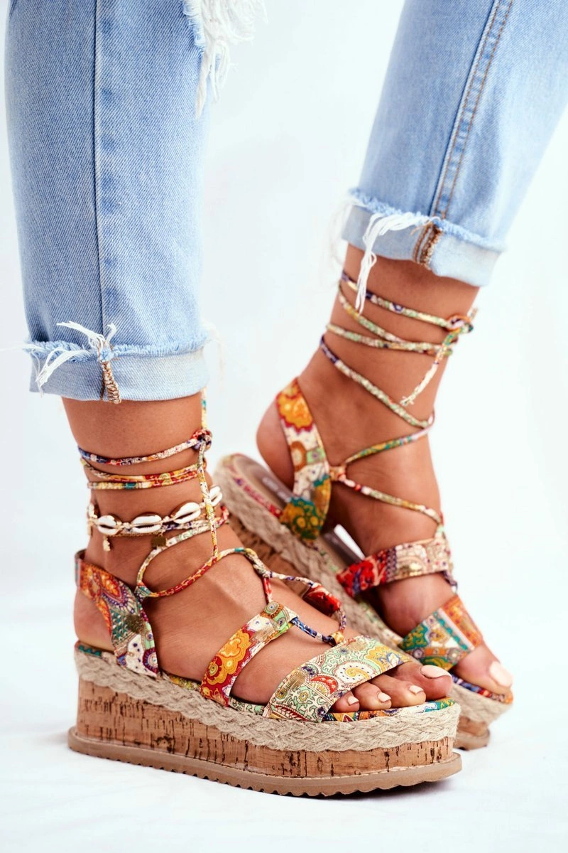 Damskie Sandały Na Korkowej Platformie Wiązane Pomarańczowe My Way