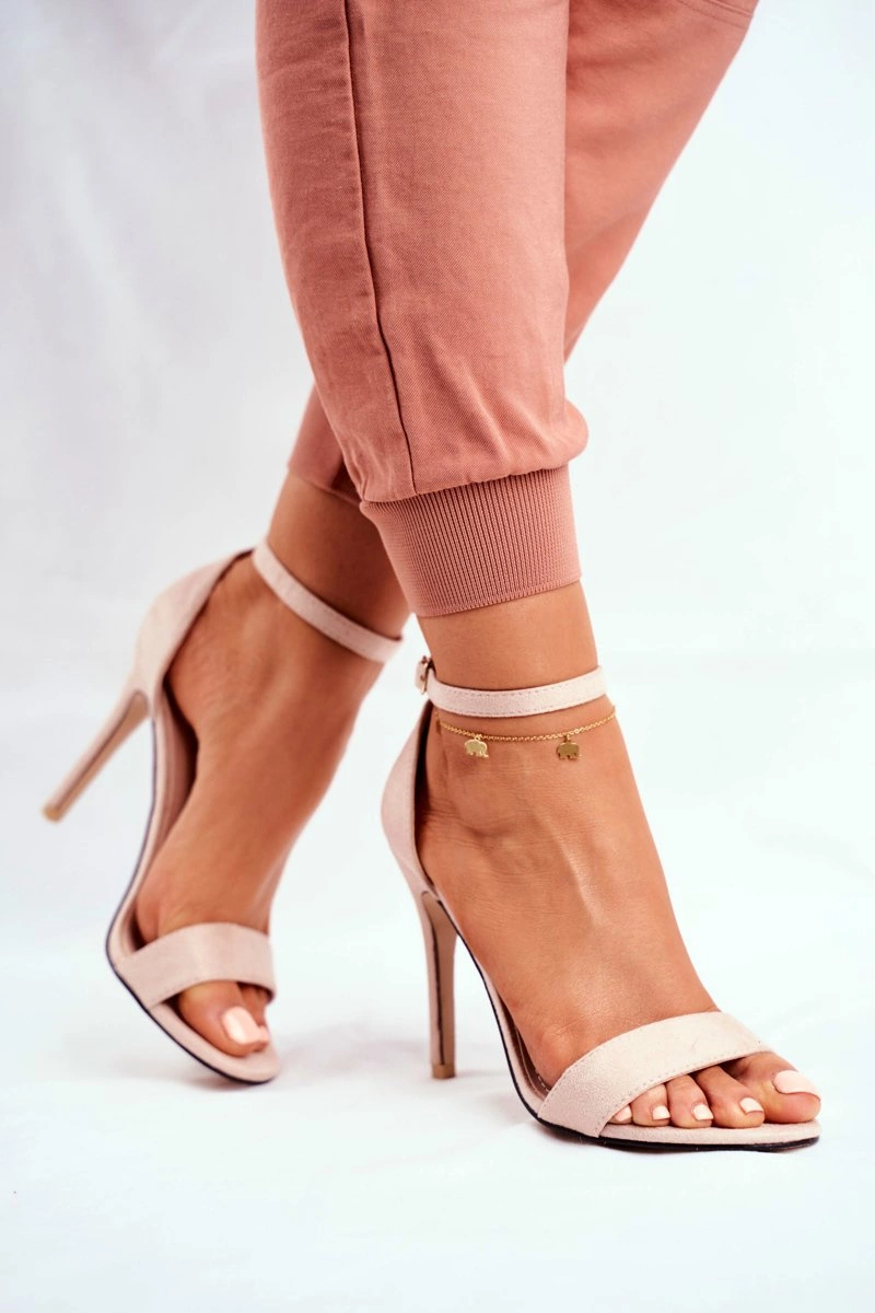 Zamszowe Sandały Na Szpilce Beżowe Liberty