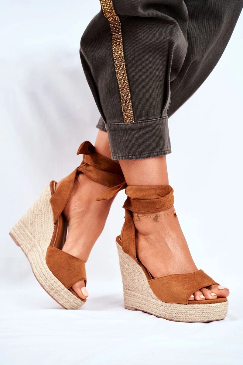 Sandały Damskie Na Koturnie Wiązane Camel Belleza