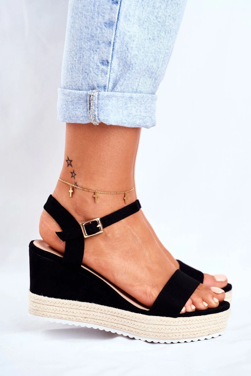 Sandały Damskie Na Koturnie Czarne Merdoe