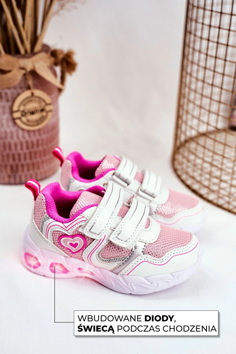 Sportowe Buty Dziecięce Świecące Na Rzepy Białe Scarlet