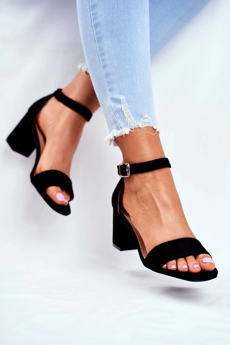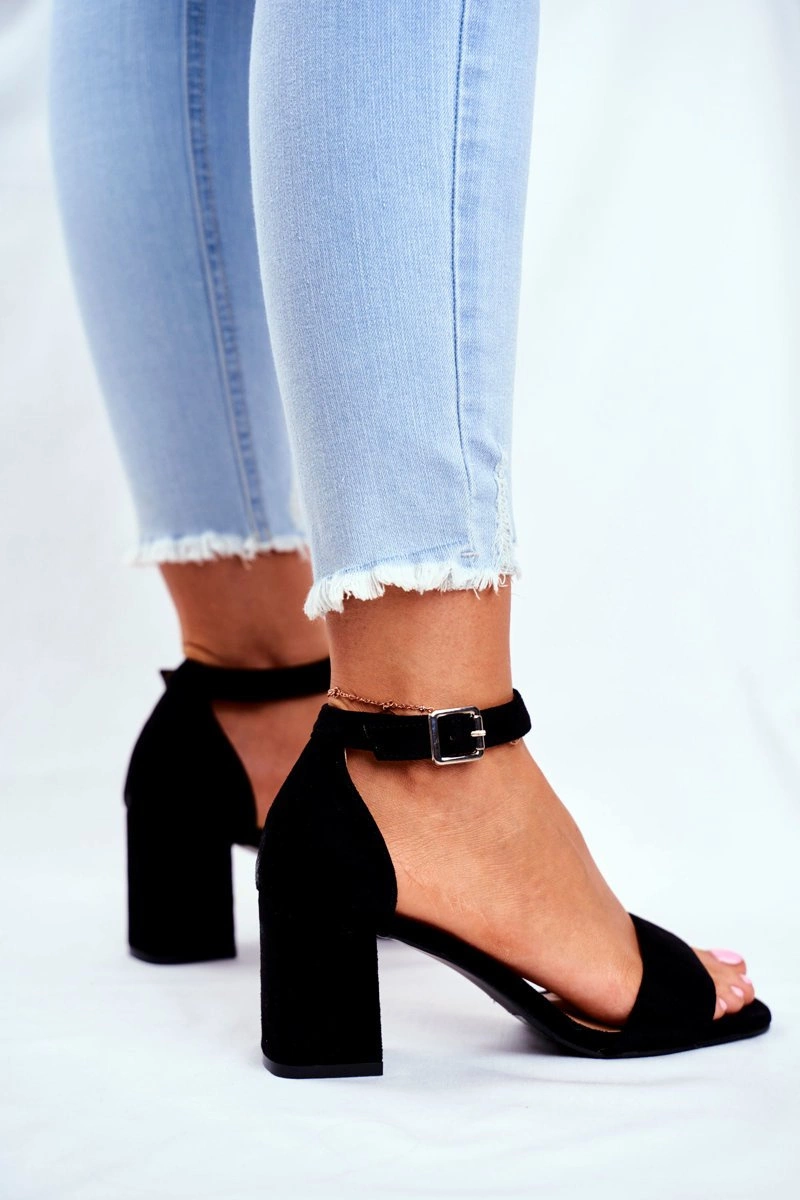 Zamszowe Sandały Na Słupku Vinceza 20-17058 Czarne