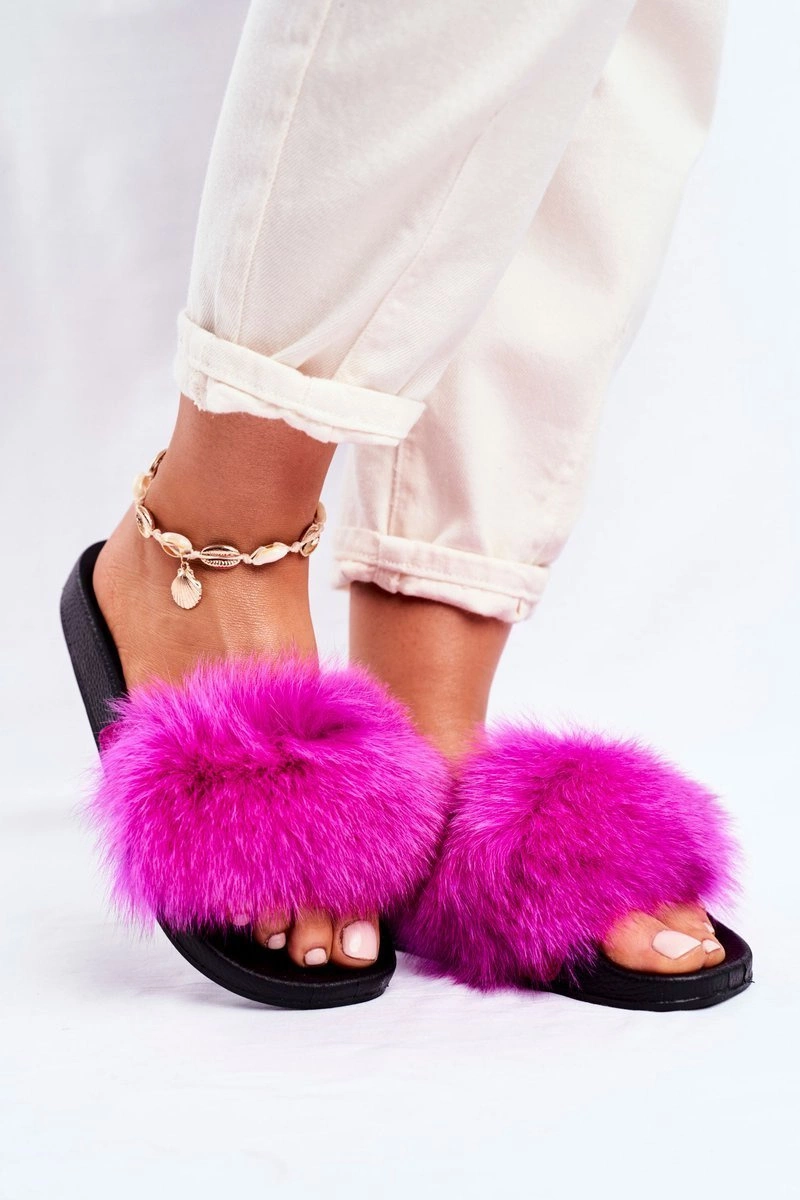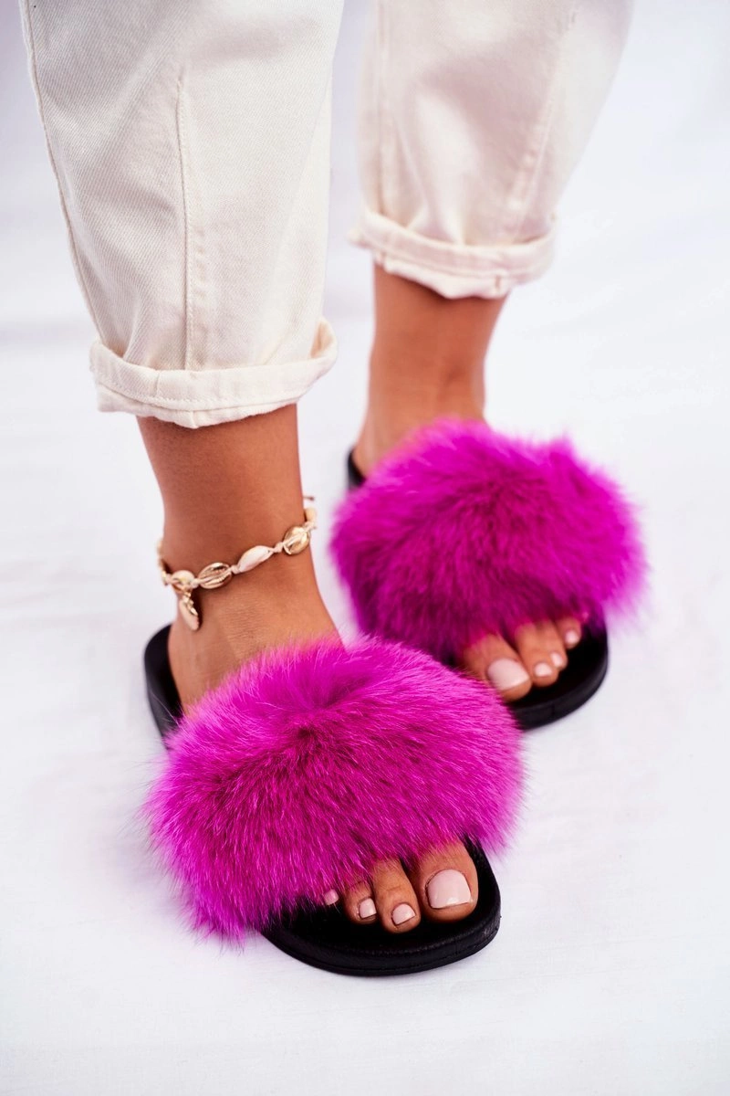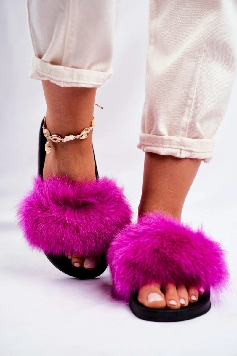 Damskie Klapki z Futerkiem Fuksja Belmondo