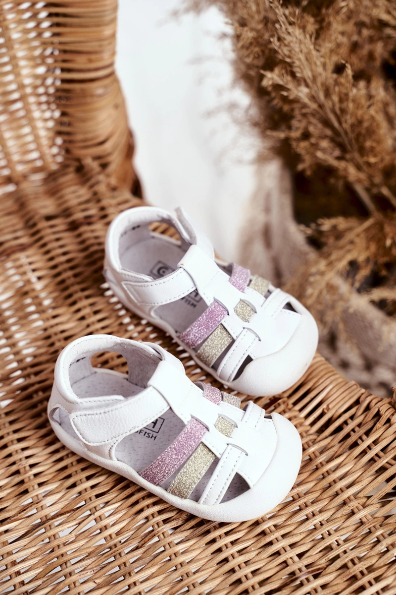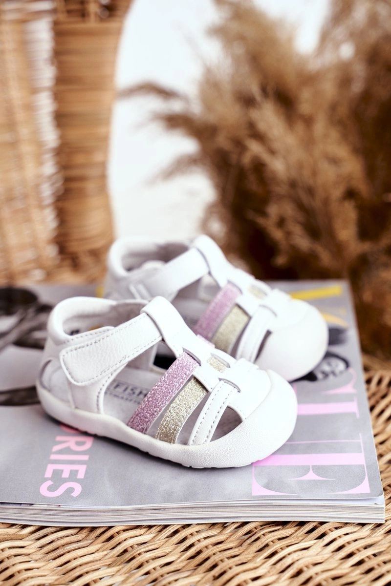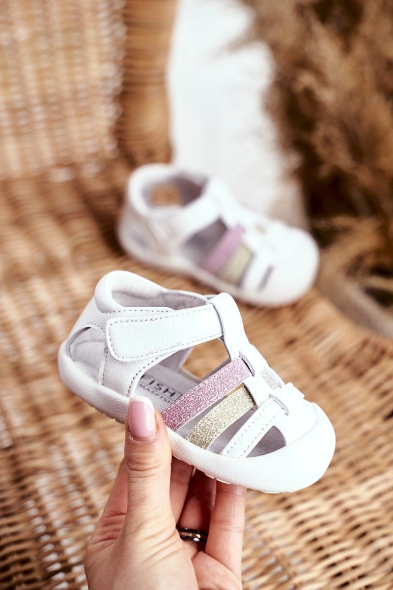 Sandały Dziecięce na Rzepy Brokat Białe Ontario
