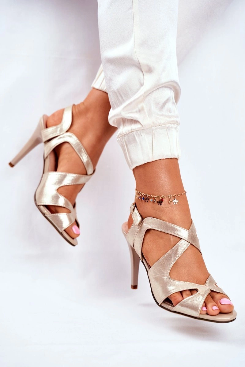 Sandały Damskie Na Szpilce Sergio Leone Złote SK427