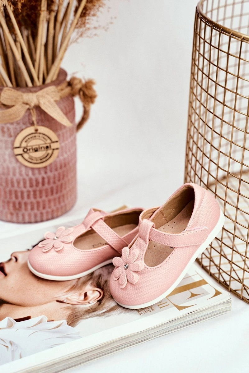 Balerinki Dziecięce na Rzepy Kwiatuszek Różowe Antrela