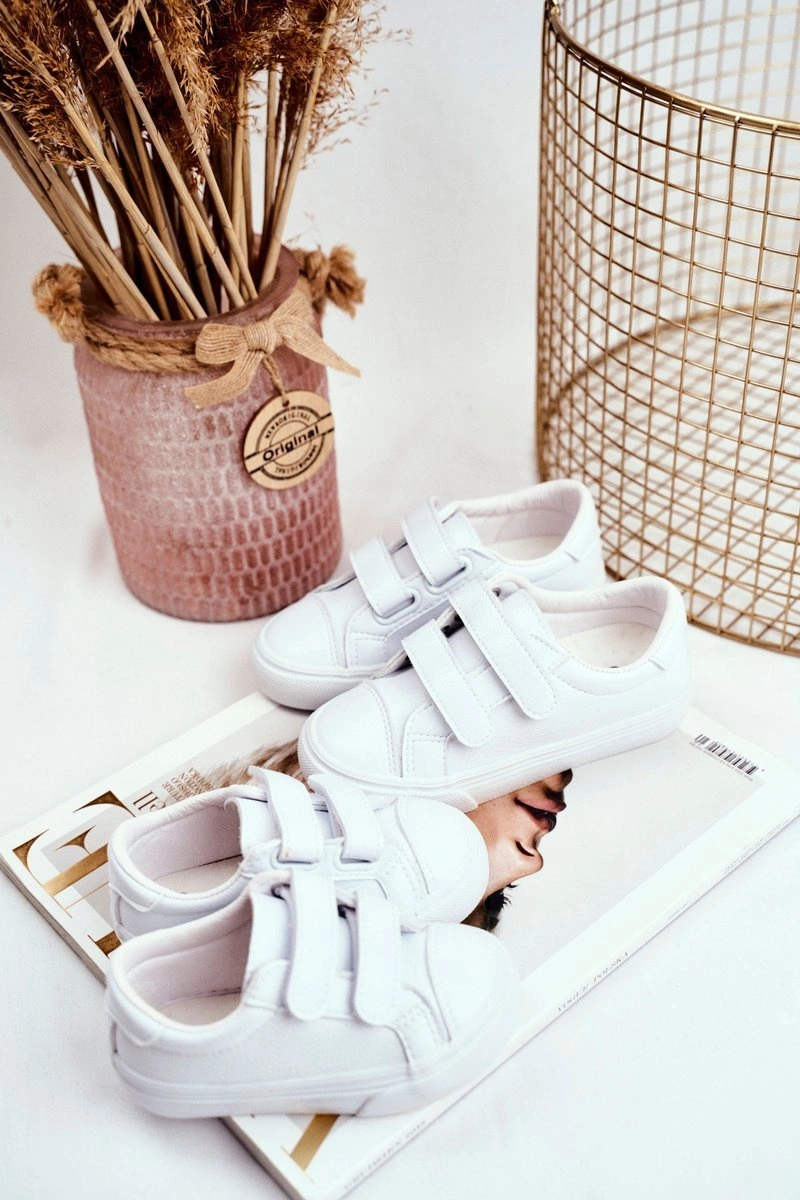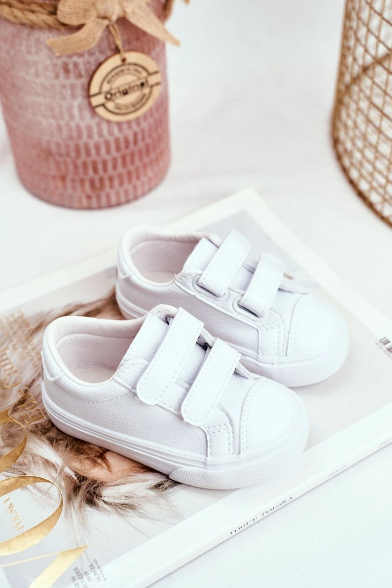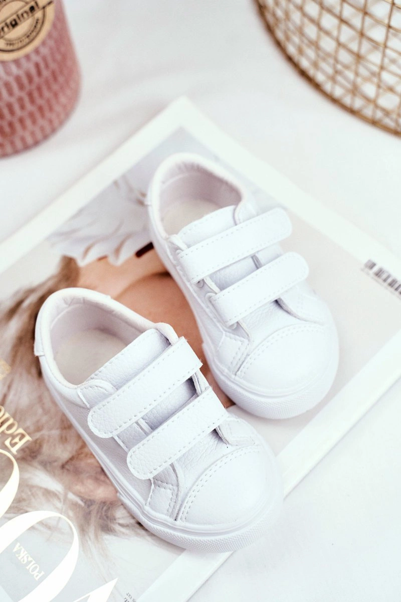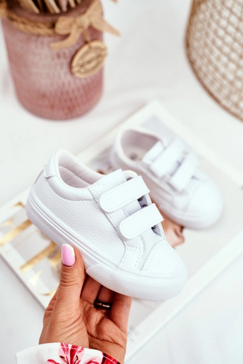 Tenisówki Dziecięce na Rzepy Białe Pergomo