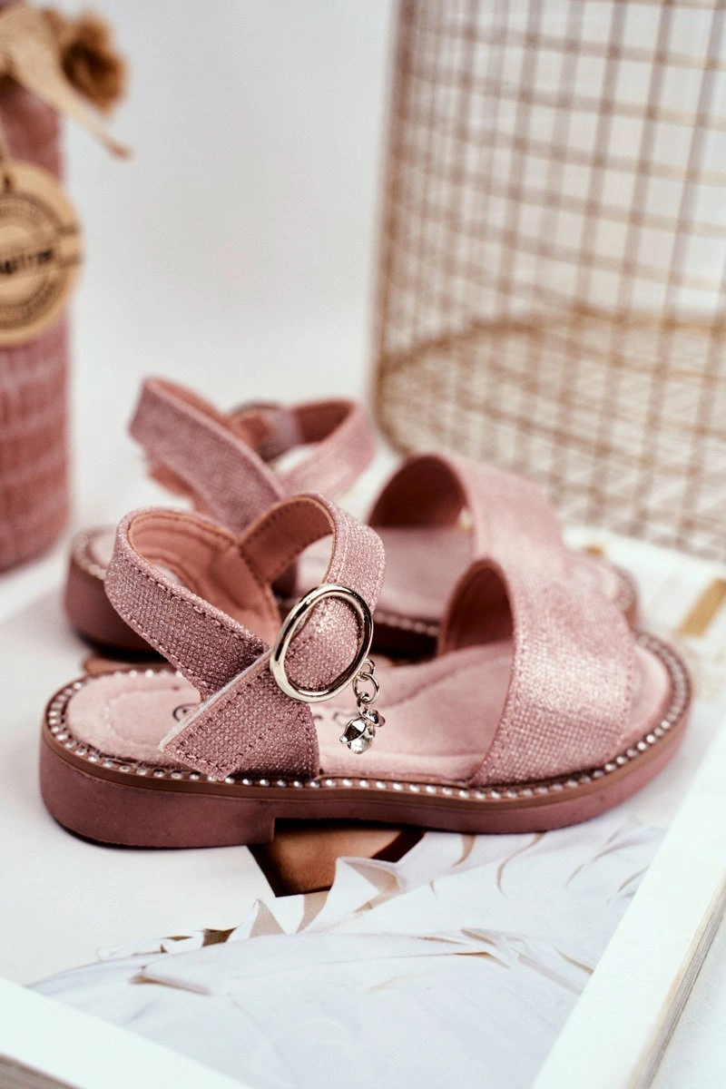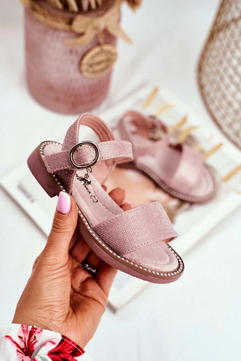Sandały Dziecięce na Rzepy Różowe Brokat Verden