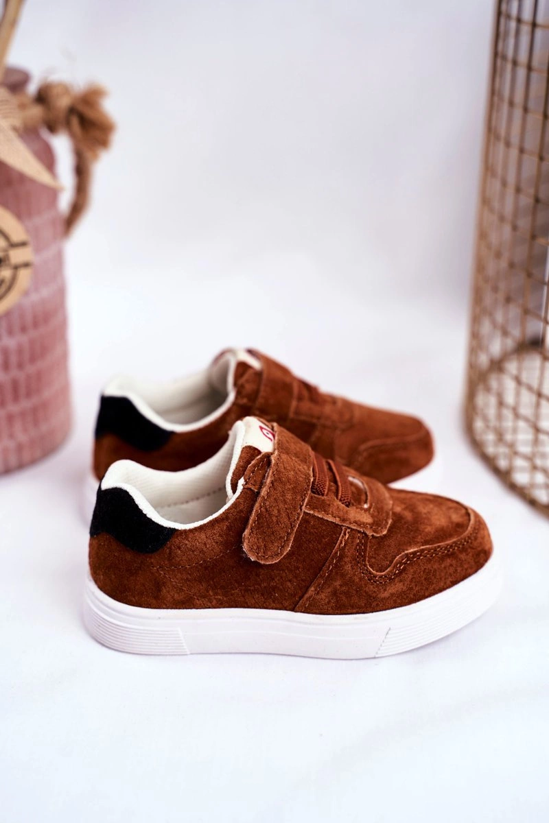 Tenisówki Dziecięce na Rzepy Zamszowe Brązowe Trelmo