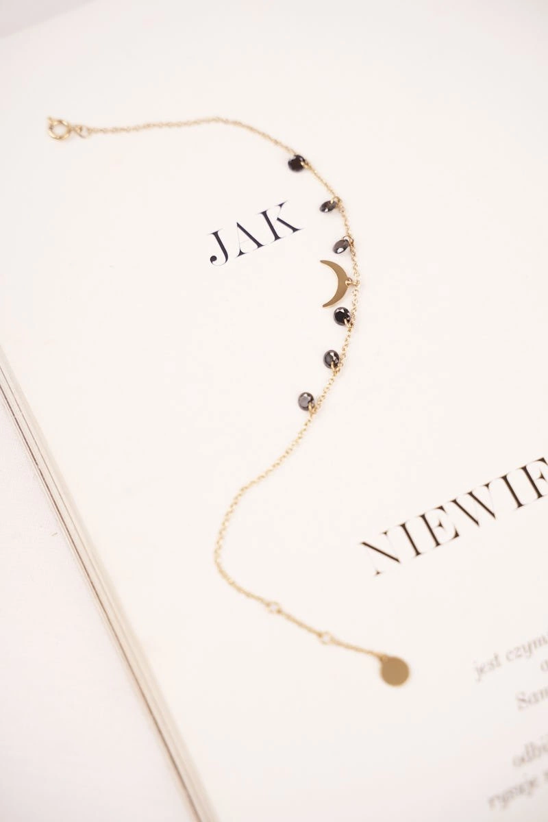 Damska Bransoletka Celebrytka Złota Księżyc Czarne Cyrkonie Chloë