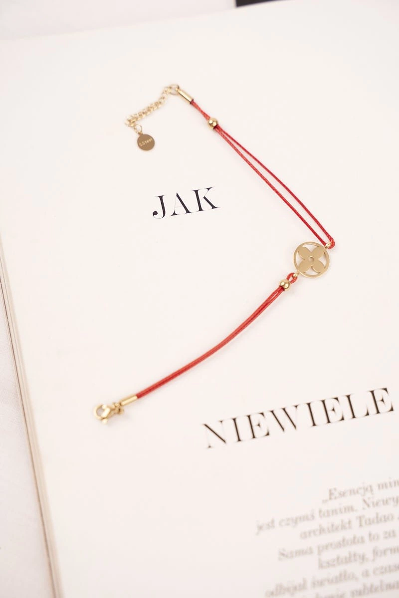 Damska Bransoletka Czerwony Sznurek Celebrytka Złota Koniczynka Clara