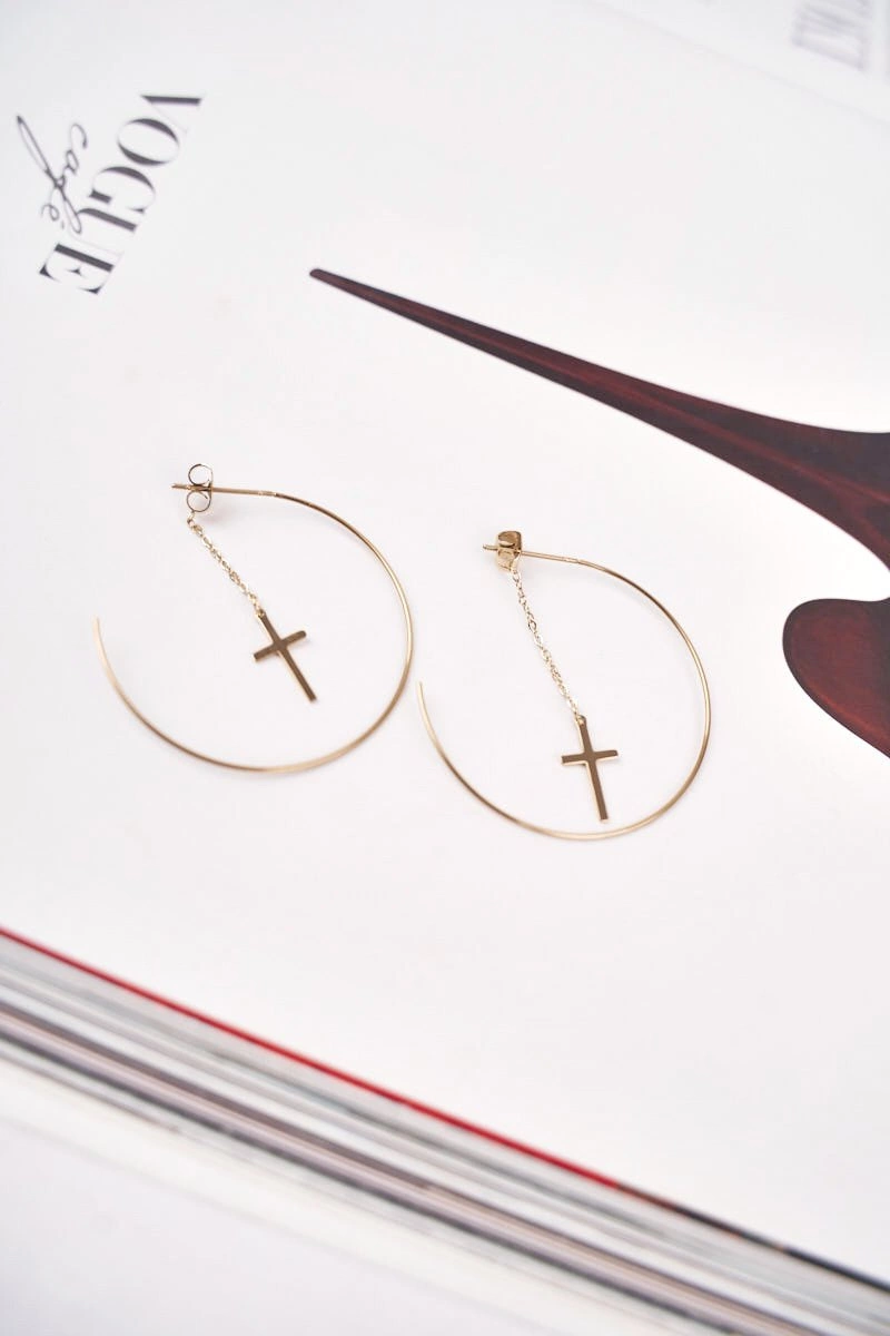 Damskie Kolczyki Koła Złote Krzyż Patricia