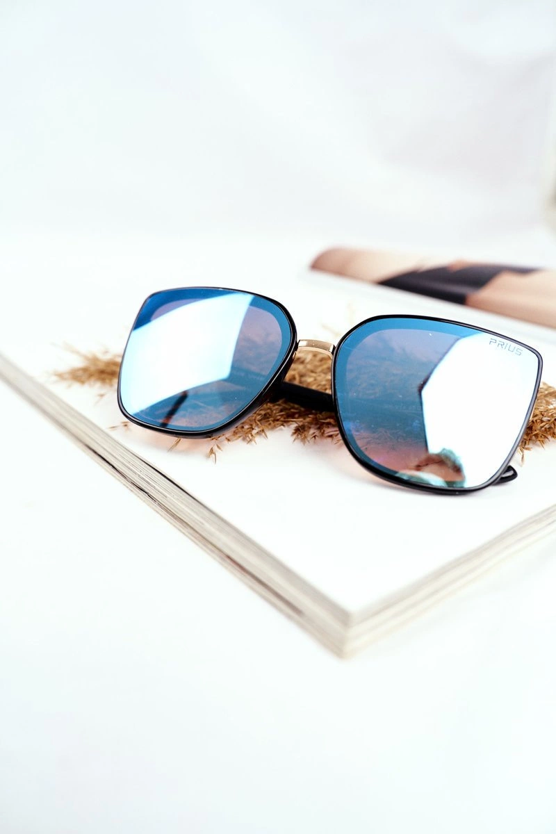 Okulary Przeciwsłoneczne Prius PR-V14 Czarne Niebieskie Szkła Lustrzane
