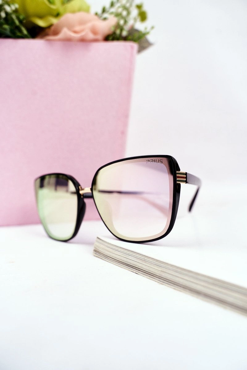 Czarne Okulary Przeciwsłoneczne Prius PR-V14 Różowe Szkła Lustrzane