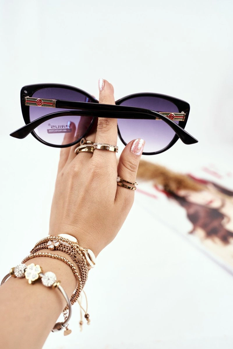 Okulary posiadają szkła z pięknym gradientem czerni oraz modne ozdoby na zausznikach widoczne na zdjęciach.Zdjęcia są naszego autorstwa i przedstawiają sprzedawany produkt.