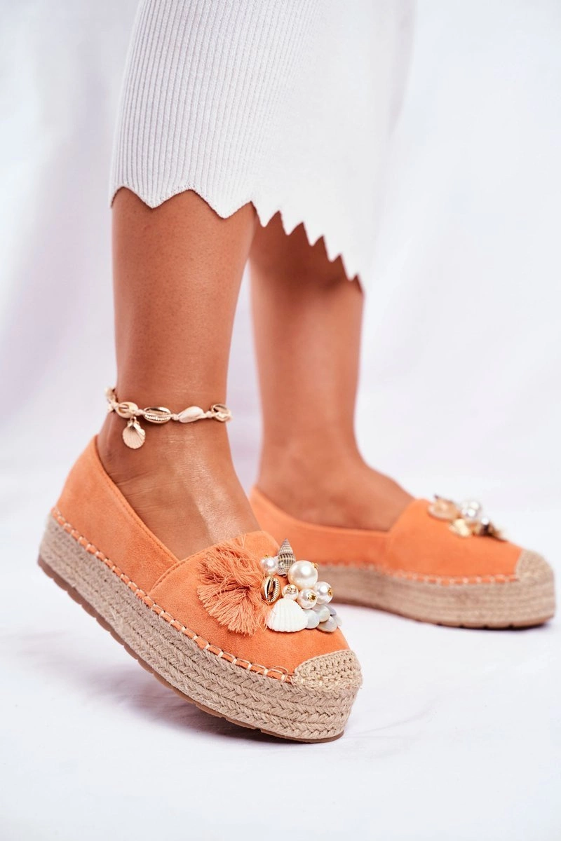 Espadryle Damskie Na Platformie Lniane Pomarańczowe Denver
