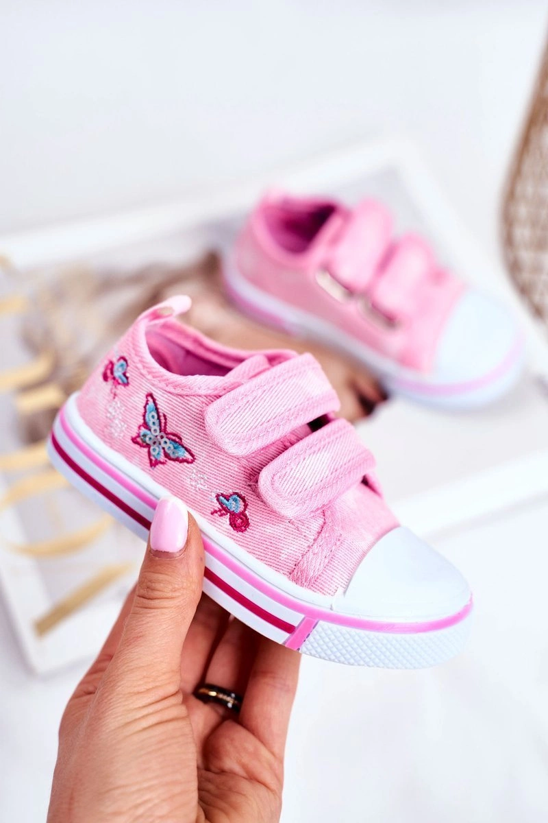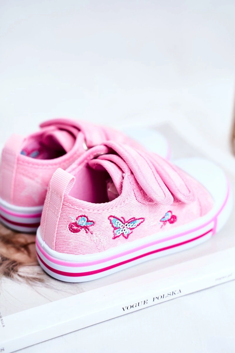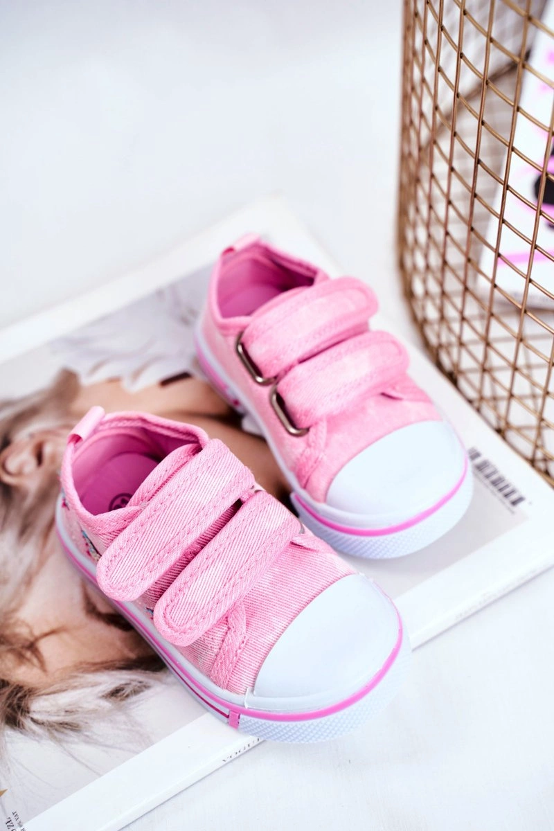 Tenisówki Dziecięce na Rzepy Różowe Junalo
