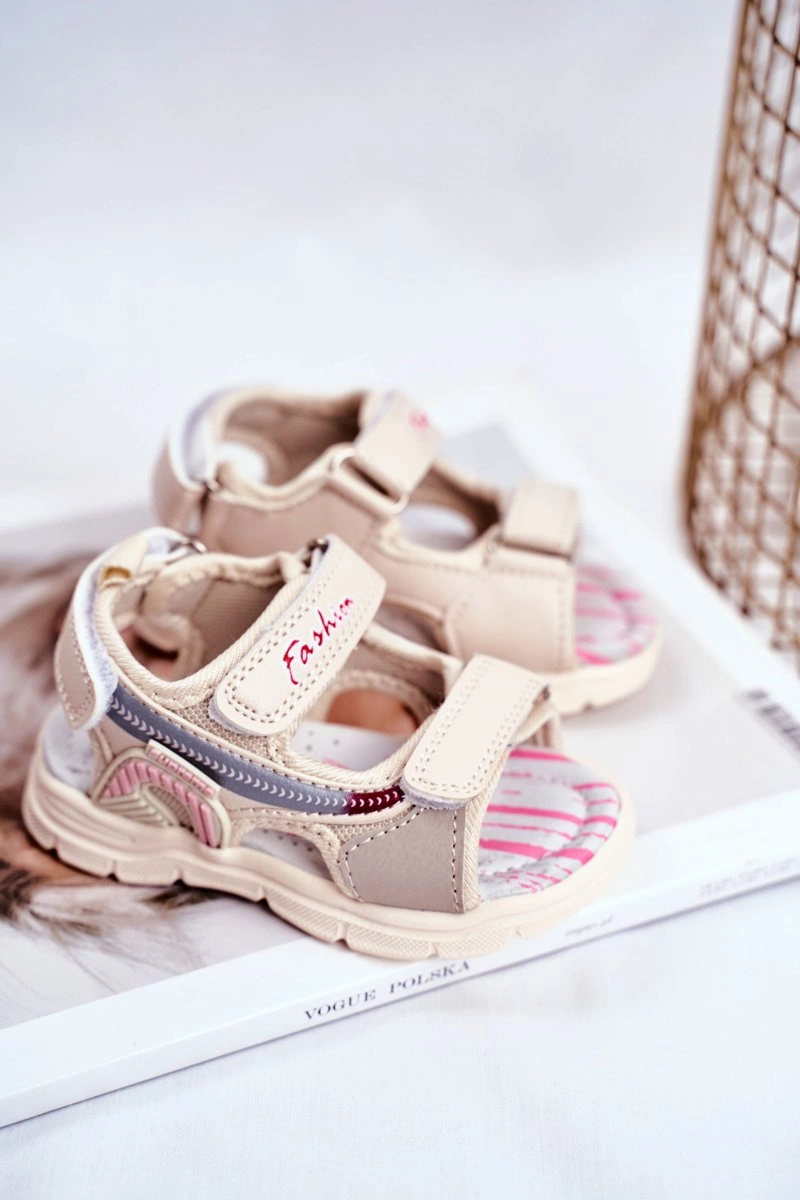 Sandały Dziecięce na Rzepy Beżowe Grobino