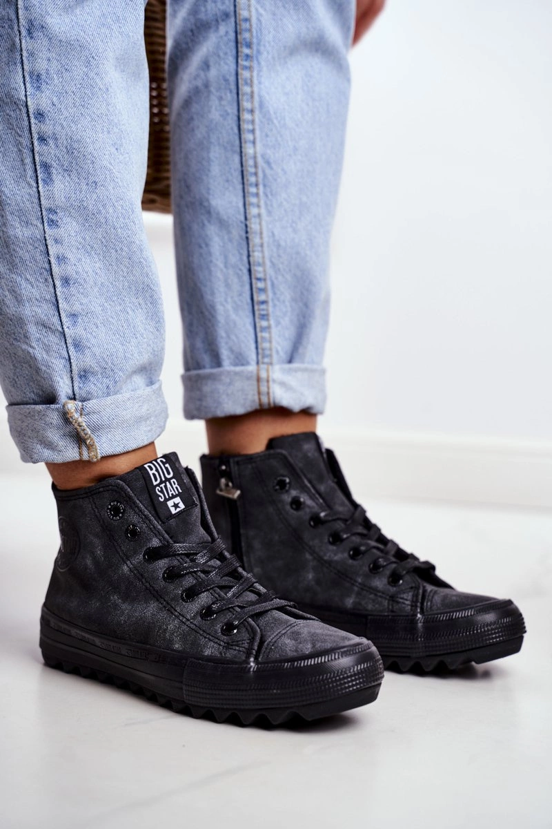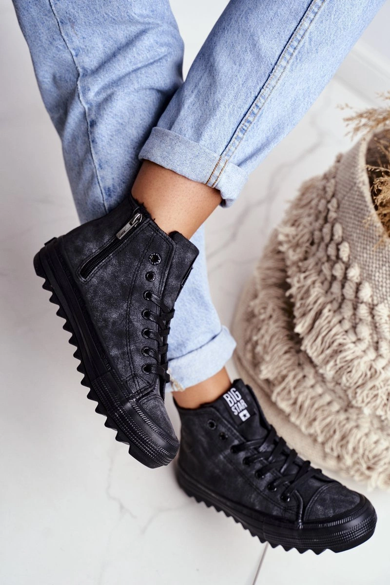Wysokie, ciepłe, ponadczasowe sznurowane trampki BIG STAR! Komfortowe z delikatnym ociepleniem w postaci futerka z krótkim włosiem, które doskonale sprawdzi się w chłodniejsze dni. Antypoślizgowa, solidna podeszwa, to gwarancja bezpieczeństwa. Klasyczny wzór połączony z niespotykaną dotąd wygodą to doskonały przepis na praktyczne i oryginalne buty. Przy wyborze rozmiaru prosimy sugerować się tabelą rozmiarów.