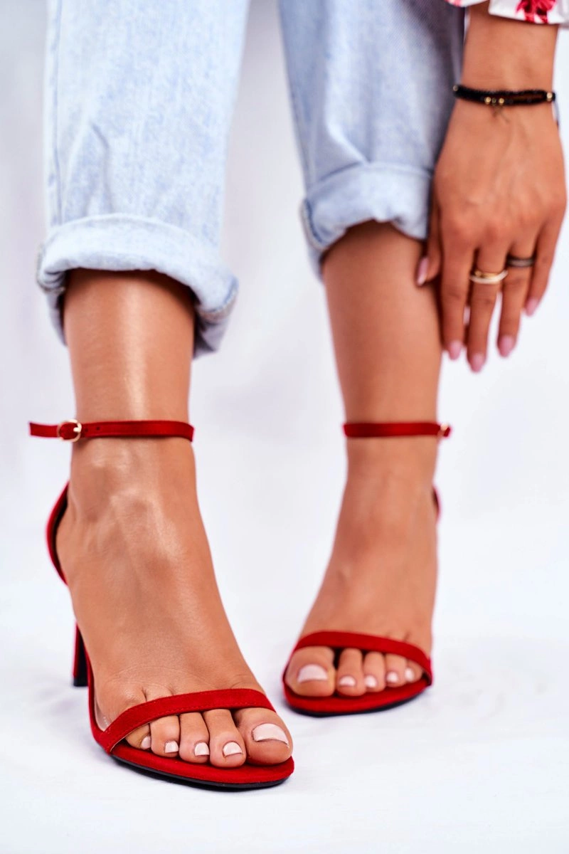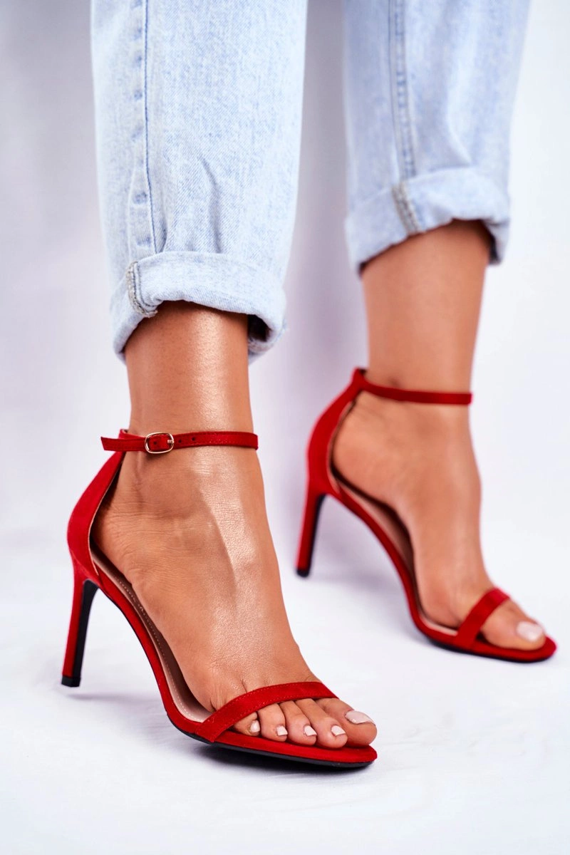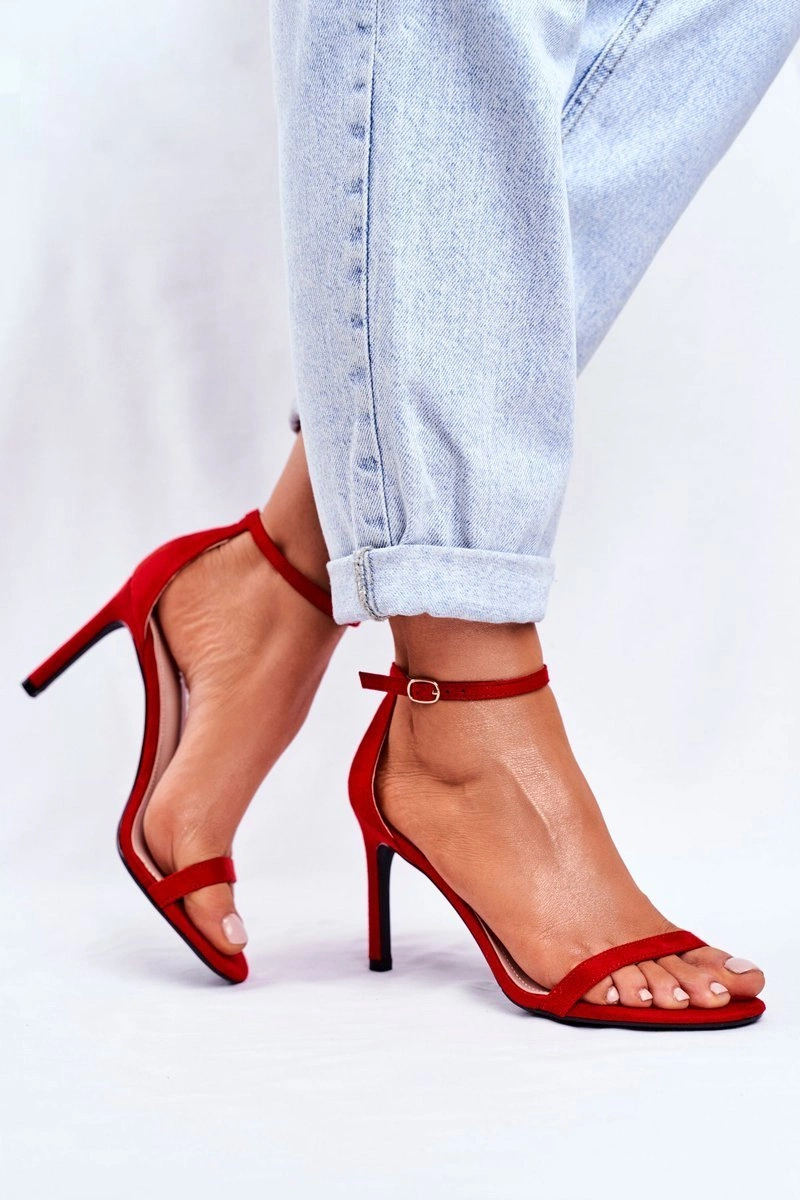 Sandały Damskie Na Szpilce Klasyczne Czerwone Basilian
