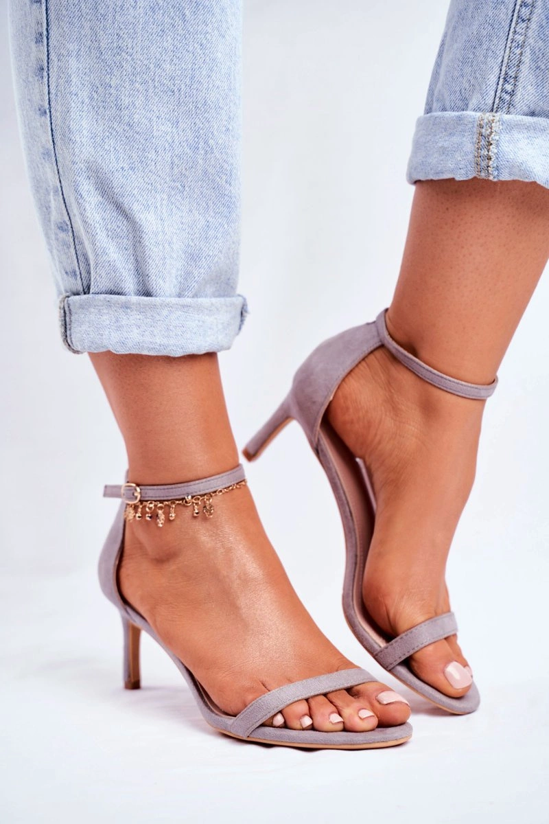 Sandały Damskie Na Szpilce Klasyczne Szare Mintore